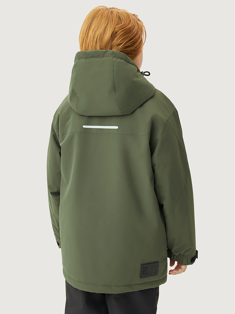 Мы все продумали до мелочей, поэтому модель дополнительно оснащена манжетами на резинке и патами на липах для регулировки по низу рукава, светоотражающими элементами для безопасности ребенка в темное время суток.
