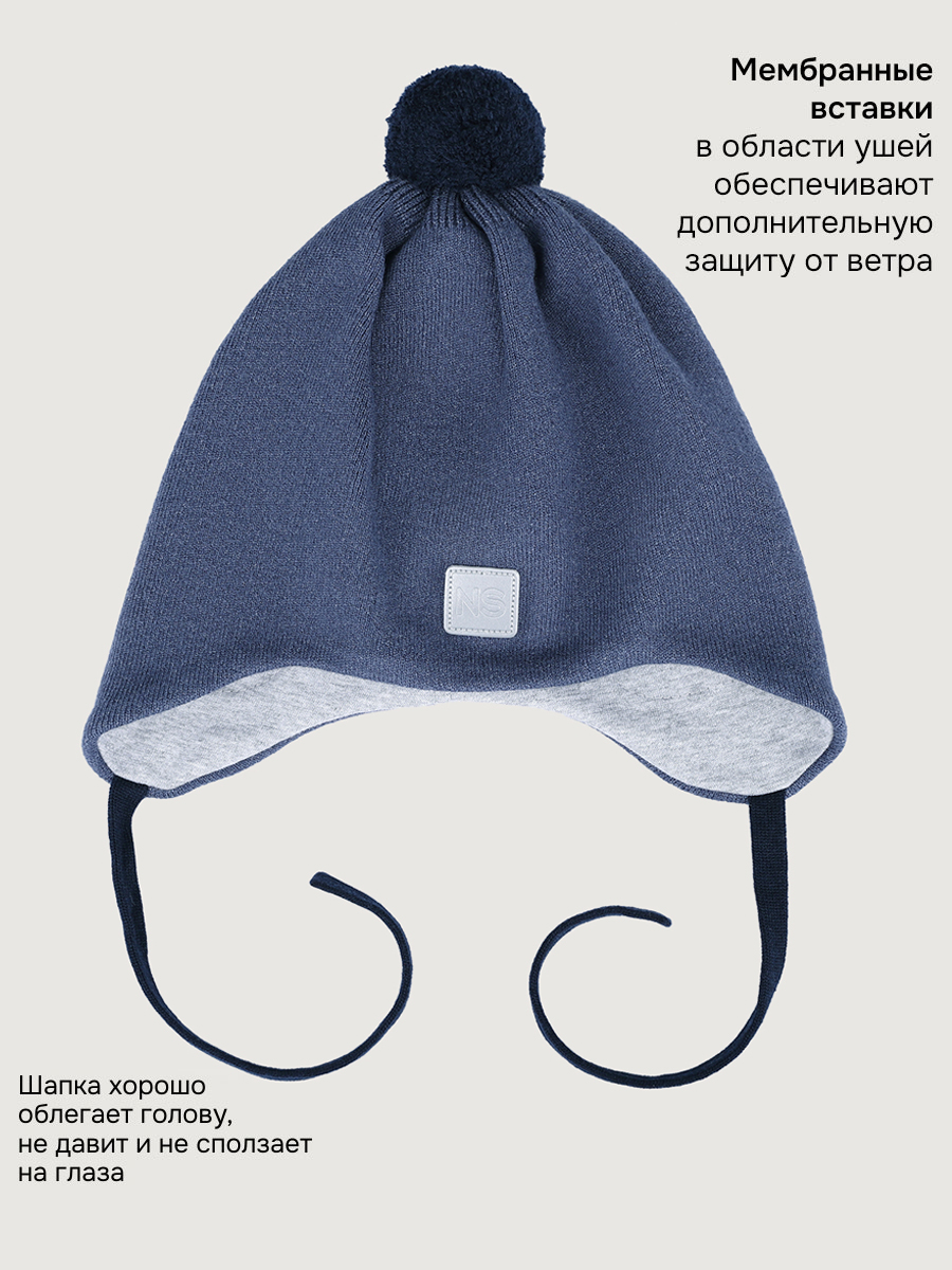 Шапка ГОРИЗОНТ из вискозной пряжи на хлопковой подкладке. Мембранные вставки в области ушей надежно защитят ребенка от проникновения холодного ветра. Отличный крой обеспечивает идеальную посадку, лоб и уши надежно закрыты. Наличие светоотражающих элементов для безопасности ребенка в темное время суток.