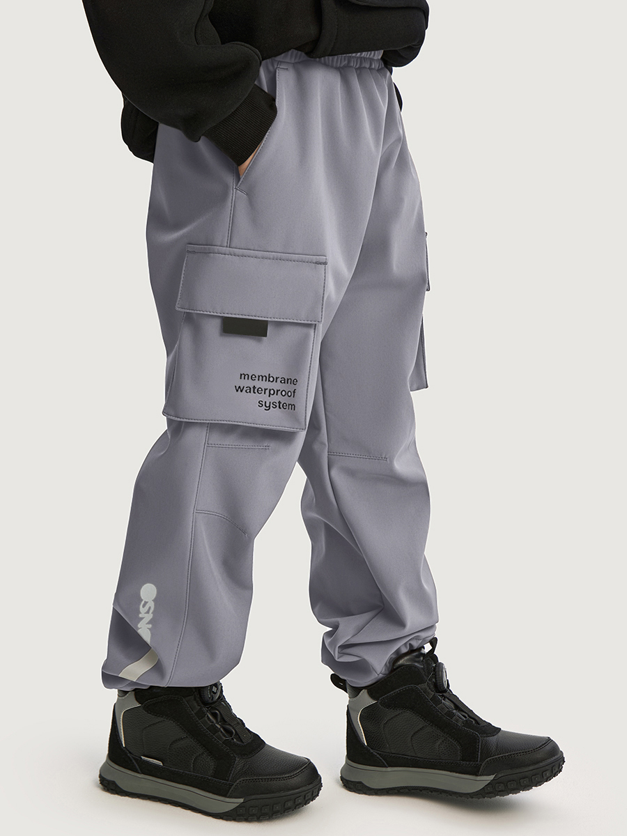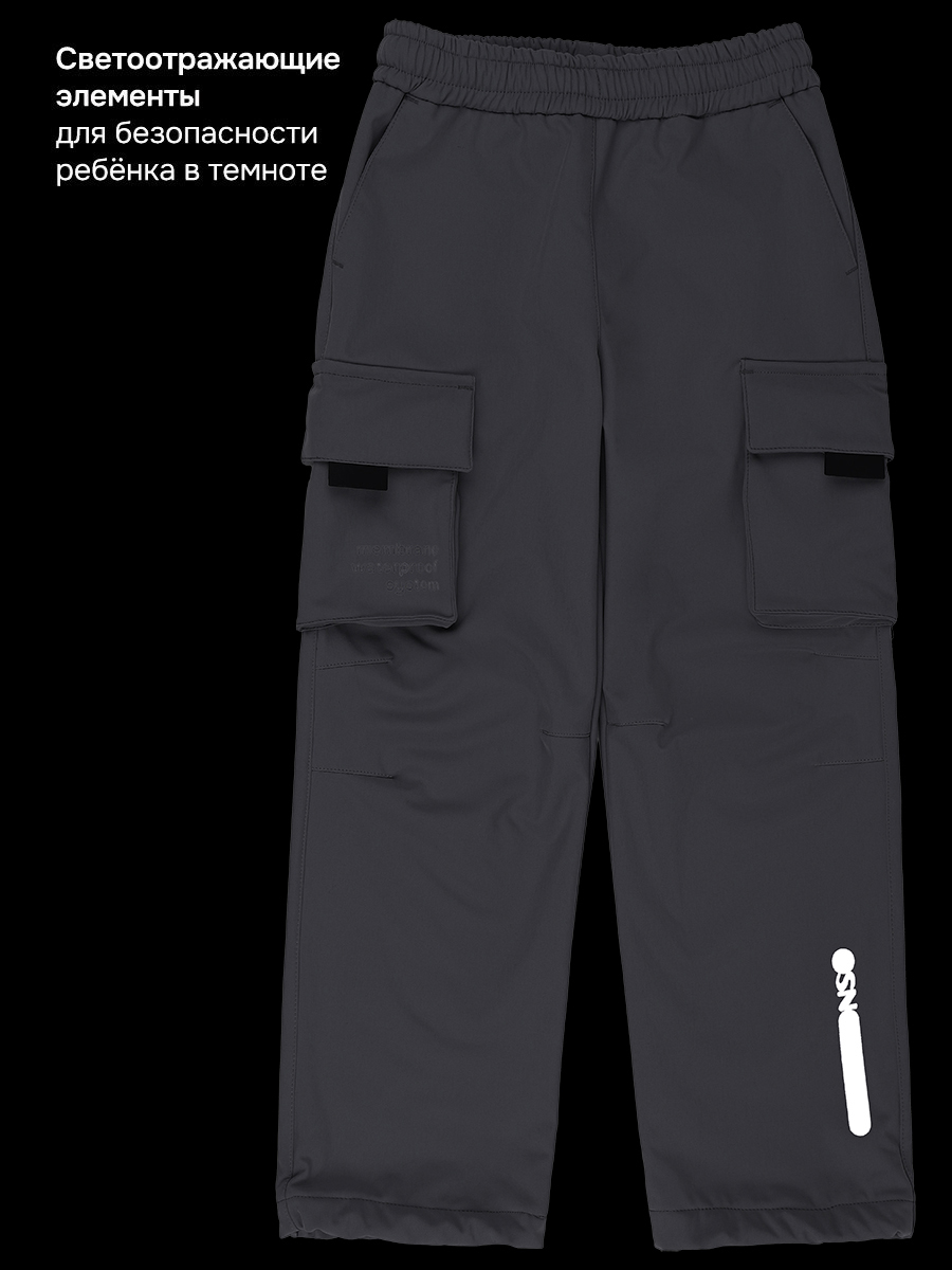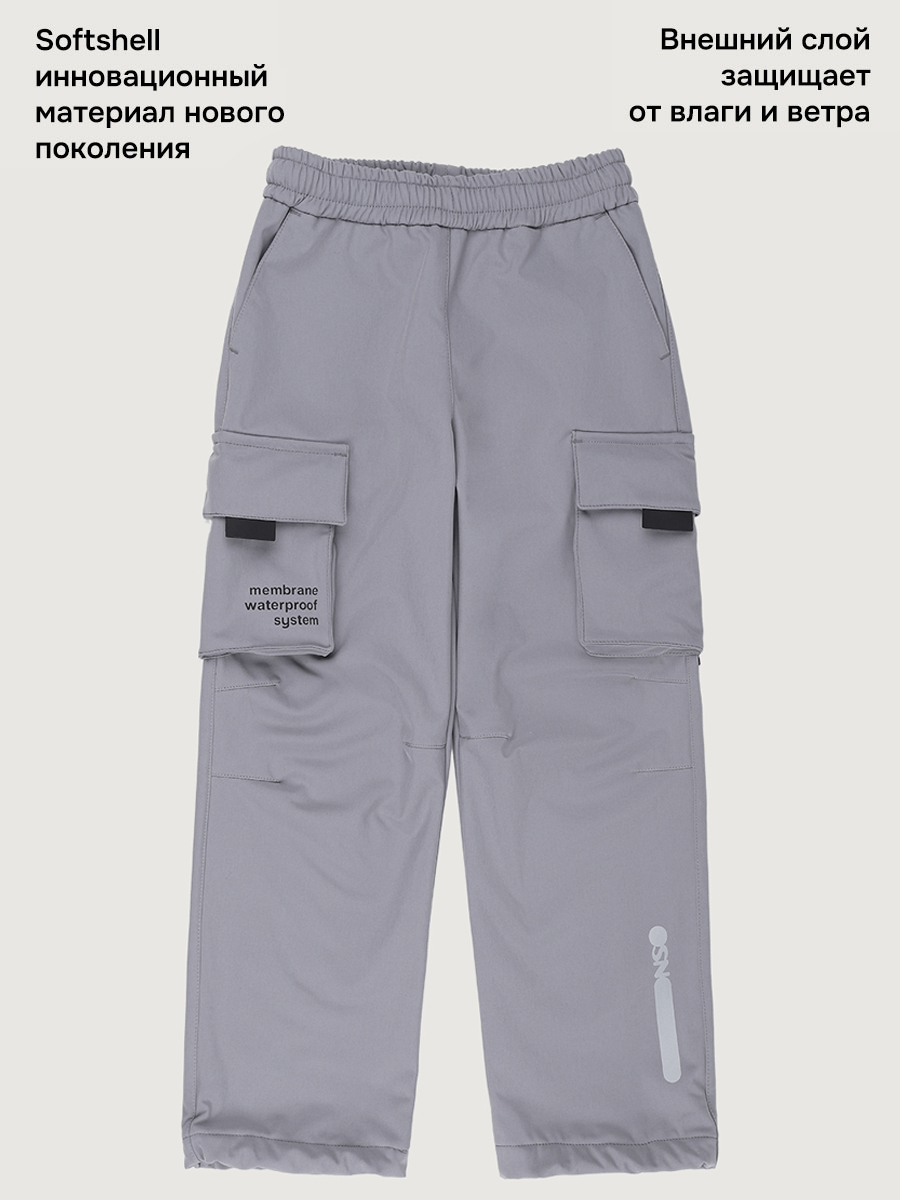 Брюки КАРГО из Softshell идеально подходят активным детям на прогулках, которые много двигаются и не сидят на месте. Softshell - это инновационный материал нового поколения, внешний слой которого защищает от влаги и ветра, внутренний слой из флиса сохраняет тепло и отводит лишнюю влагу, а промежуточный мембранный слой имеет хорошую паропроницаемость и позволяет коже дышать. Softshell приятный на ощупь, легкий и эластичный материал, не сковывающий движения ребенка.
