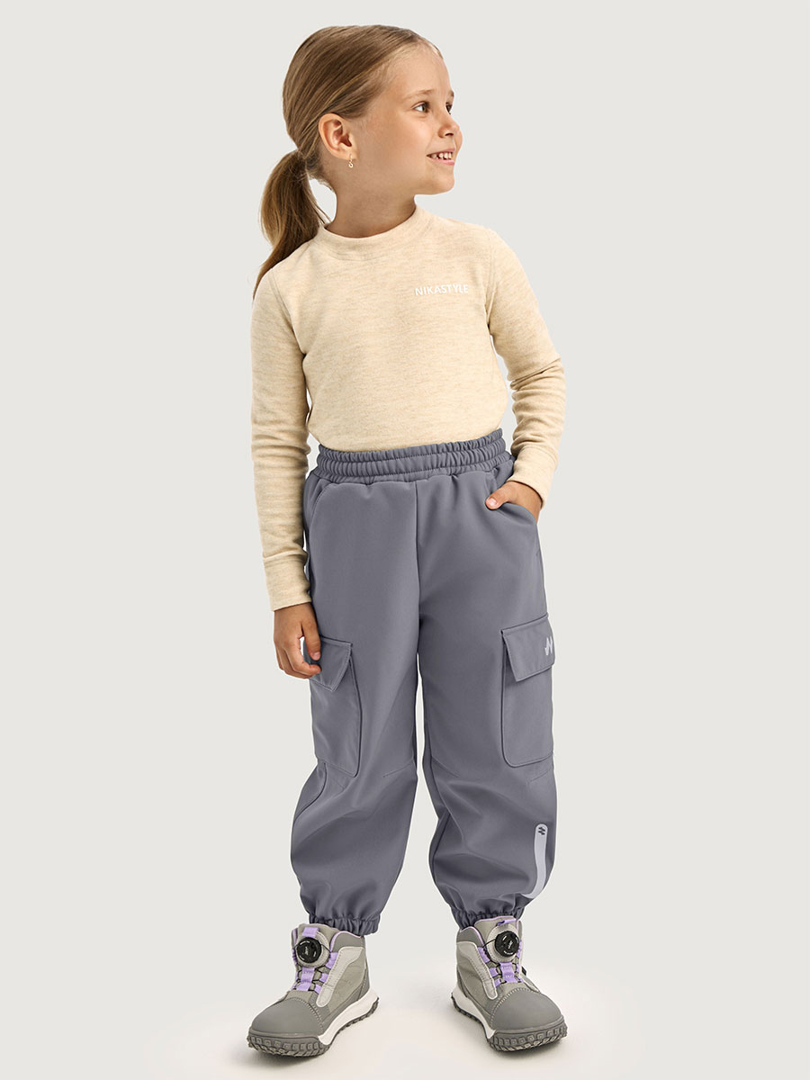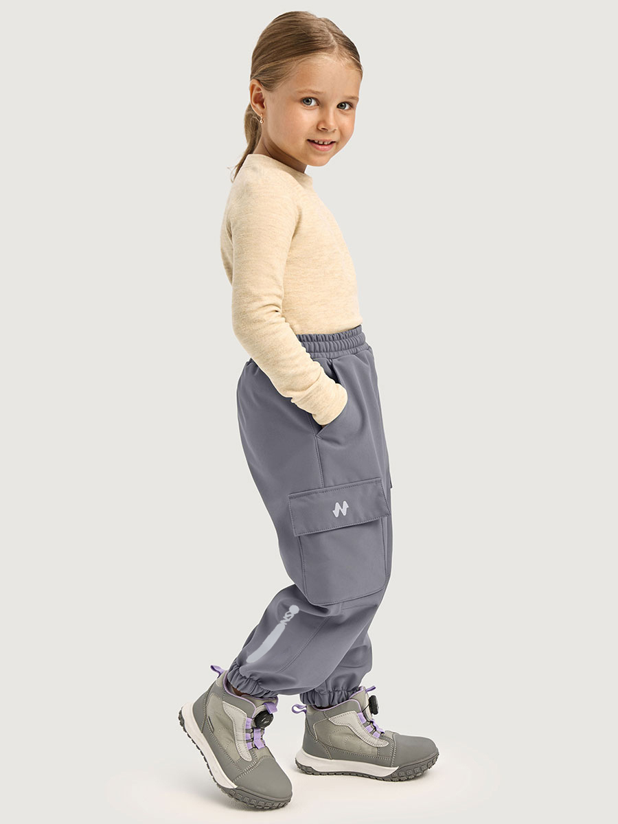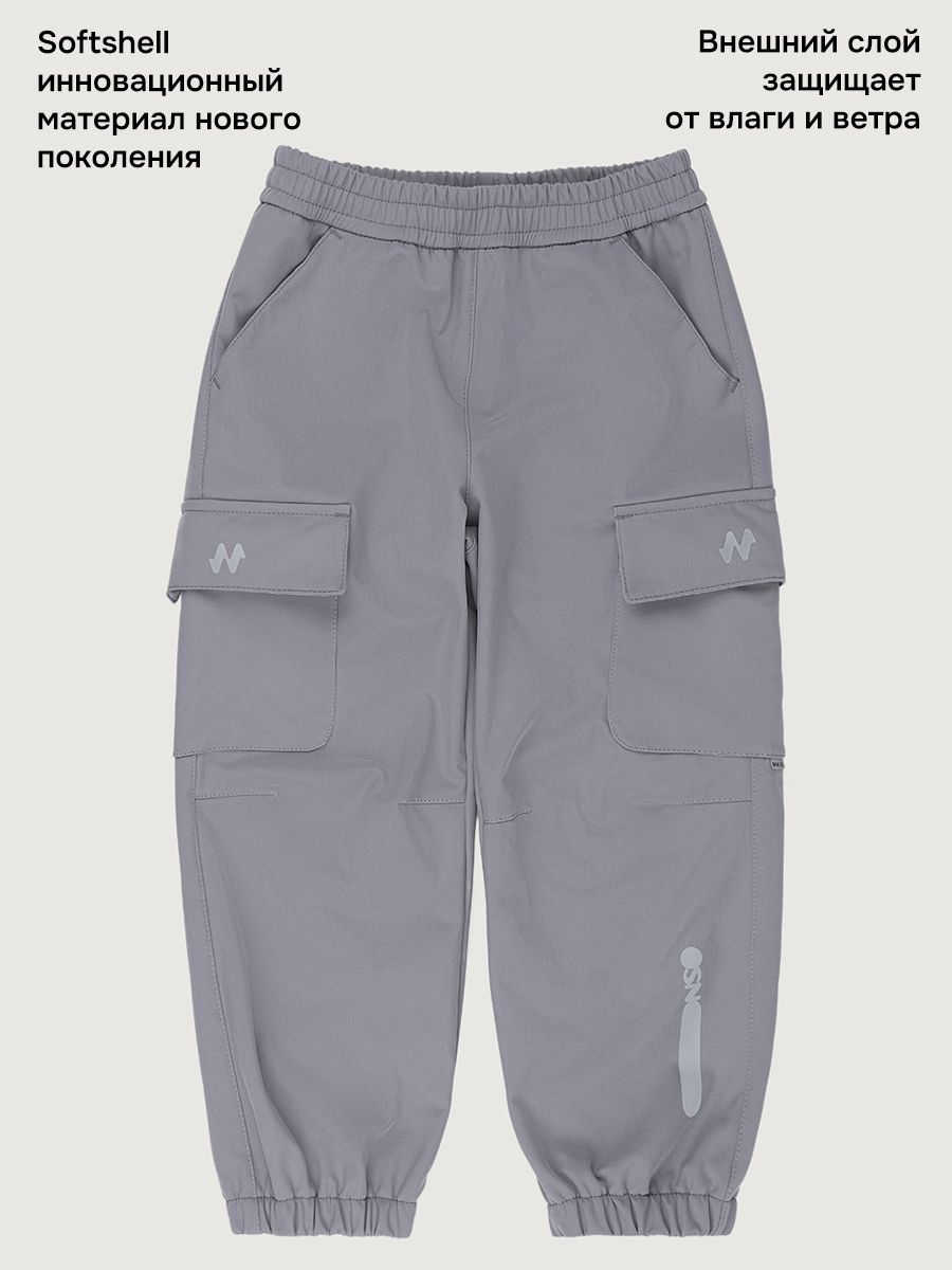 Брюки КАРГО из Softshell идеально подходят активным детям на прогулках, которые много двигаются и не сидят на месте. Softshell - это инновационный материал нового поколения, внешний слой которого защищает от влаги и ветра, внутренний слой из флиса сохраняет тепло и отводит лишнюю влагу, а промежуточный мембранный слой имеет хорошую паропроницаемость и позволяет коже дышать. Softshell приятный на ощупь, легкий и эластичный материал, не сковывающий движения ребенка.