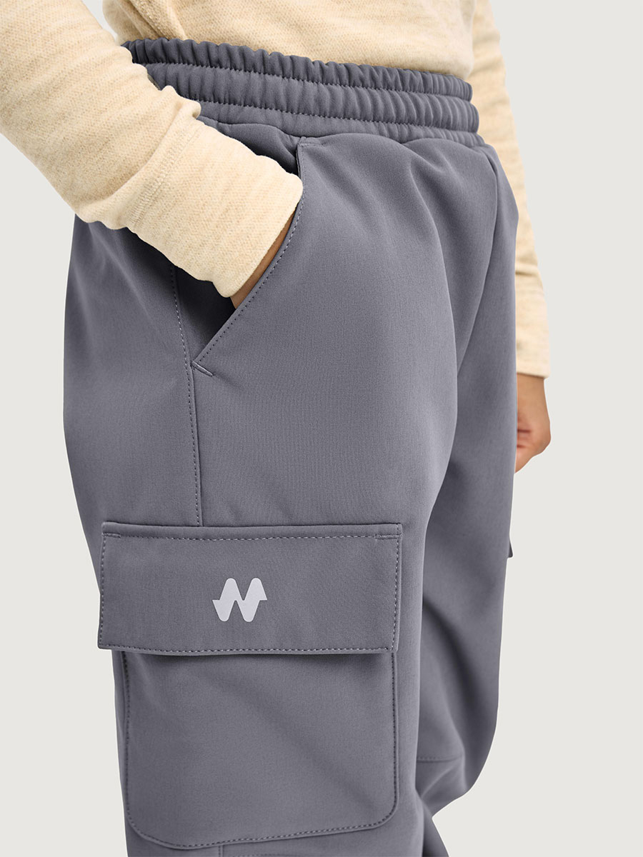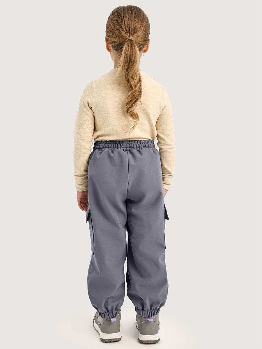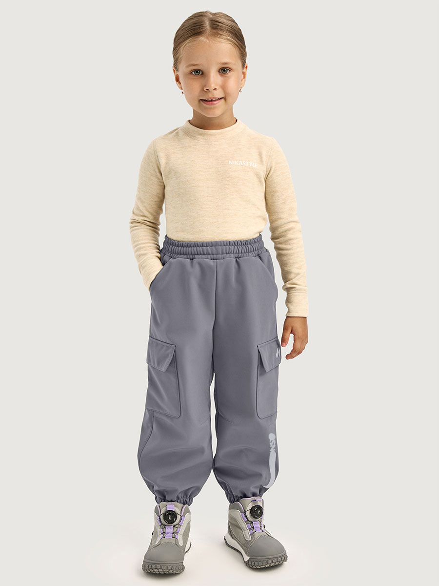 Брюки КАРГО из Softshell идеально подходят активным детям на прогулках, которые много двигаются и не сидят на месте. Softshell - это инновационный материал нового поколения, внешний слой которого защищает от влаги и ветра, внутренний слой из флиса сохраняет тепло и отводит лишнюю влагу, а промежуточный мембранный слой имеет хорошую паропроницаемость и позволяет коже дышать. Softshell приятный на ощупь, легкий и эластичный материал, не сковывающий движения ребенка.