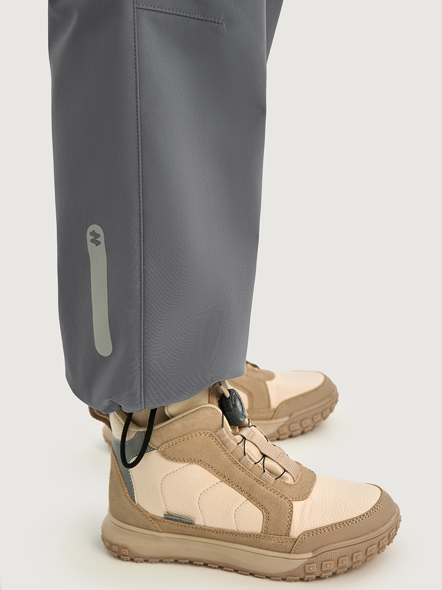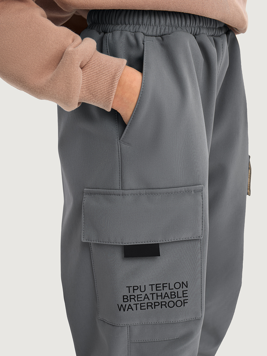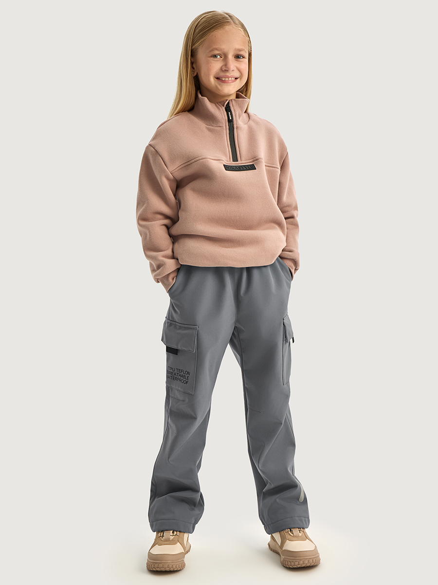 Брюки КАРГО из Softshell идеально подходят активным детям на прогулках, которые много двигаются и не сидят на месте. Softshell - это инновационный материал нового поколения, внешний слой которого защищает от влаги и ветра, внутренний слой из флиса сохраняет тепло и отводит лишнюю влагу, а промежуточный мембранный слой имеет хорошую паропроницаемость и позволяет коже дышать. Softshell приятный на ощупь, легкий и эластичный материал, не сковывающий движения ребенка.