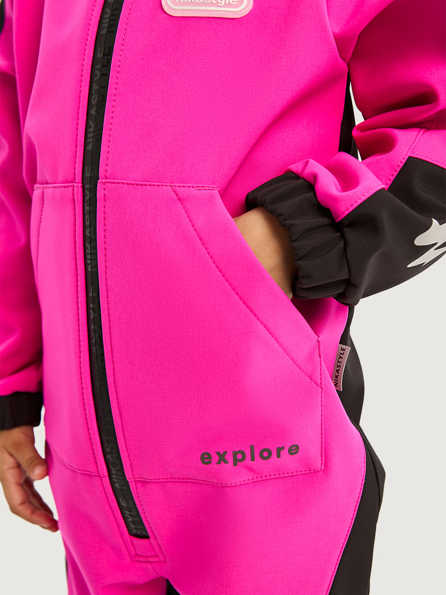 Комбинезоны ТРЕКИНГ из Softshell идеально подходят активным детям на прогулках, которые много двигаются и не сидят на месте. Softshell - это инновационный материал нового поколения, внешний слой которого защищает от влаги и ветра, внутренний слой из флиса сохраняет тепло и отводит лишнюю влагу, а промежуточный мембранный слой имеет хорошую паропроницаемость и позволяет коже дышать. Softshell приятный на ощупь, легкий и эластичный материал, не сковывающий движения ребенка.