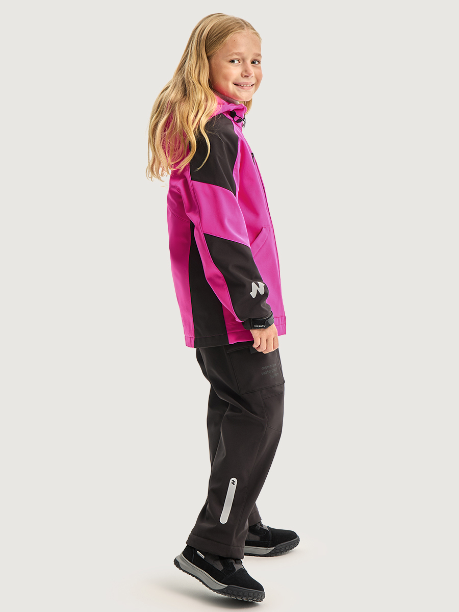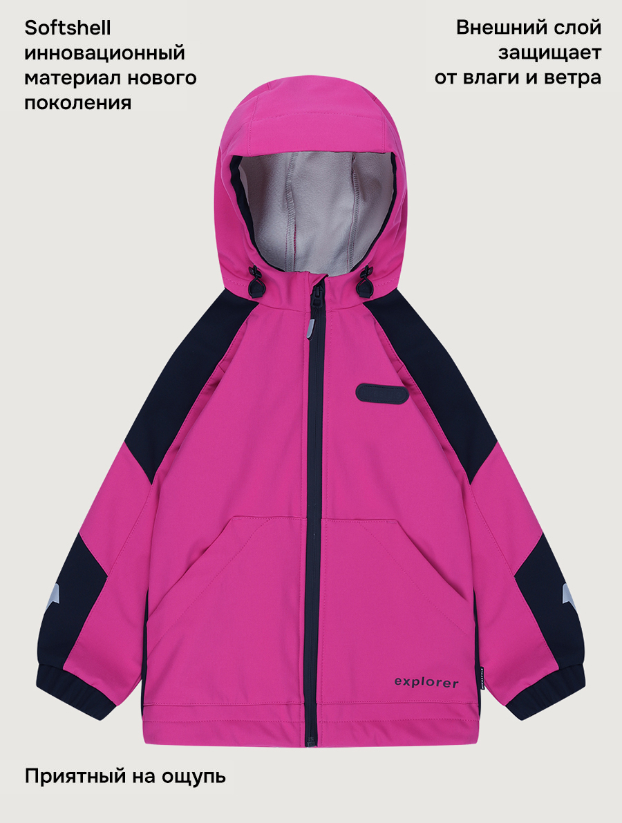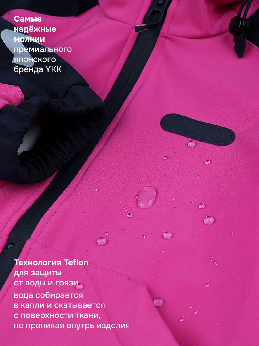Ветровка для девочки СКАЙЛАЙН из Softshell идеально подходит активным детям на прогулках, которые много двигаются и не сидят на месте. Softshell - это инновационный материал нового поколения, внешний слой которого защищает от влаги и ветра, внутренний слой из флиса сохраняет тепло и отводит лишнюю влагу, а промежуточный мембранный слой имеет хорошую паропроницаемость и позволяет коже дышать. Softshell приятный на ощупь, легкий и эластичный материал, не сковывающий движения ребенка.