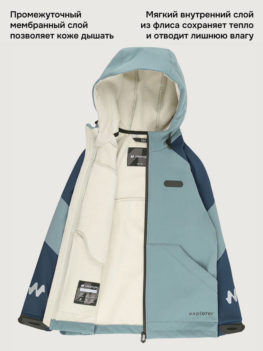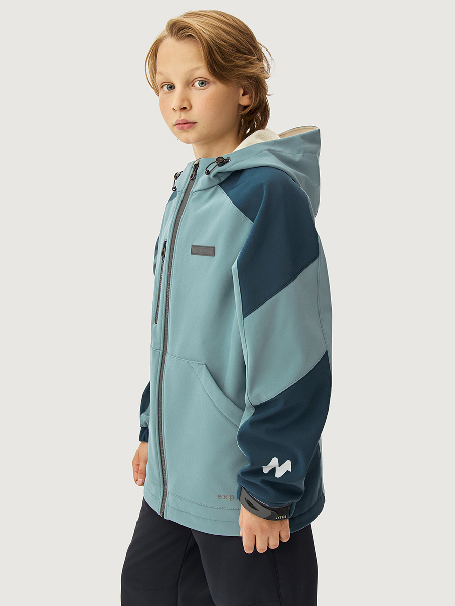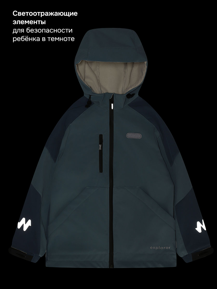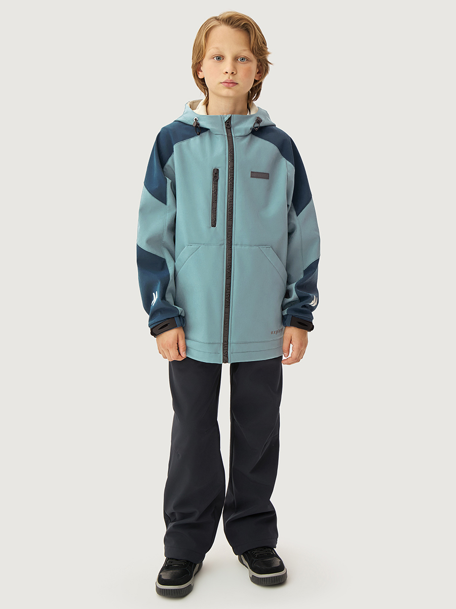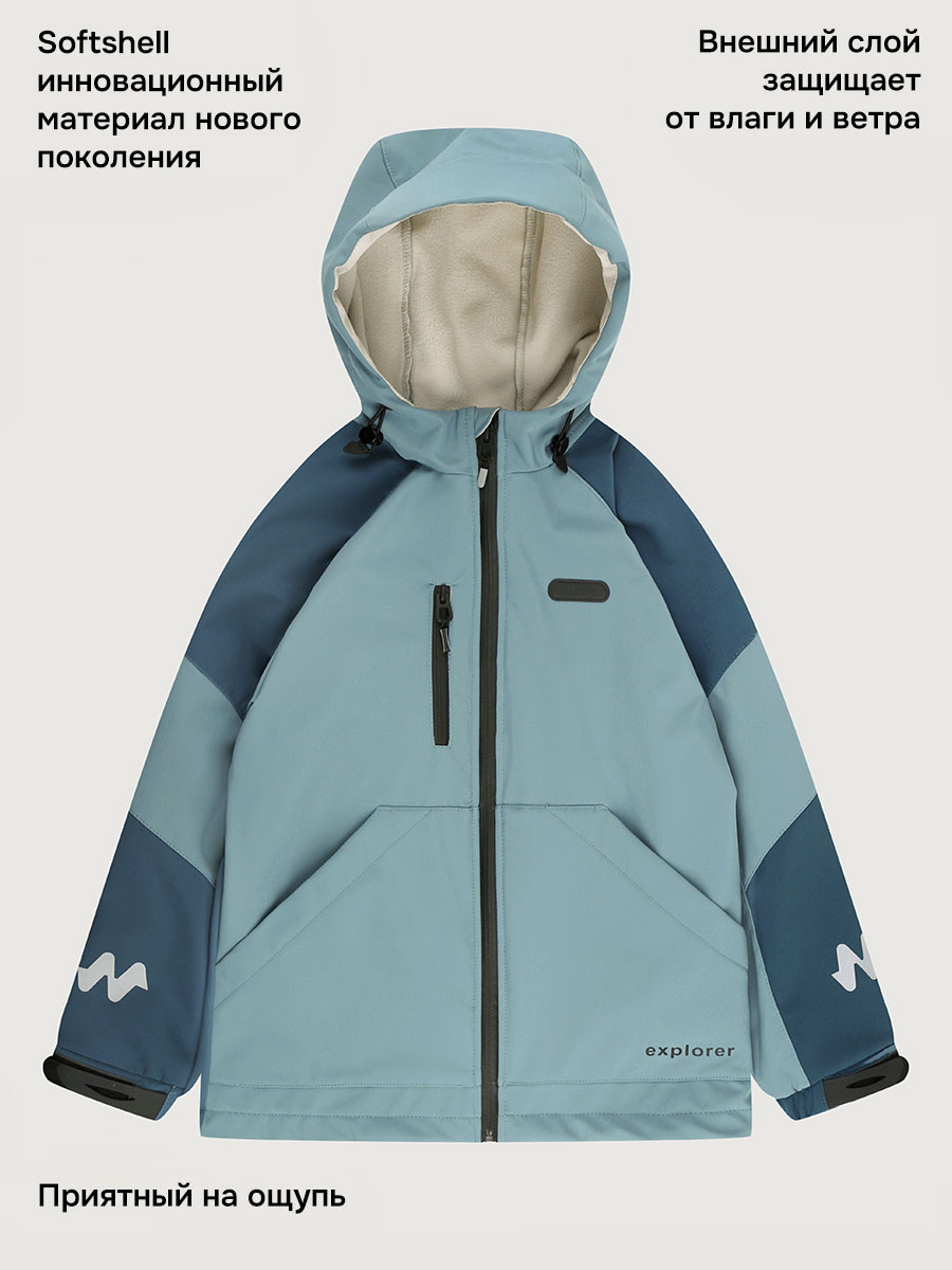 Ветровка для мальчика СКАЙЛАЙН из Softshell идеально подходит активным детям на прогулках, которые много двигаются и не сидят на месте. Softshell - это инновационный материал нового поколения, внешний слой которого защищает от влаги и ветра, внутренний слой из флиса сохраняет тепло и отводит лишнюю влагу, а промежуточный мембранный слой имеет хорошую паропроницаемость и позволяет коже дышать. Softshell приятный на ощупь, легкий и эластичный материал, не сковывающий движения ребенка.