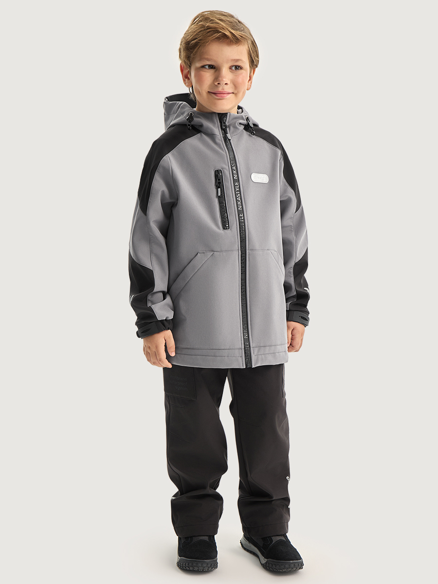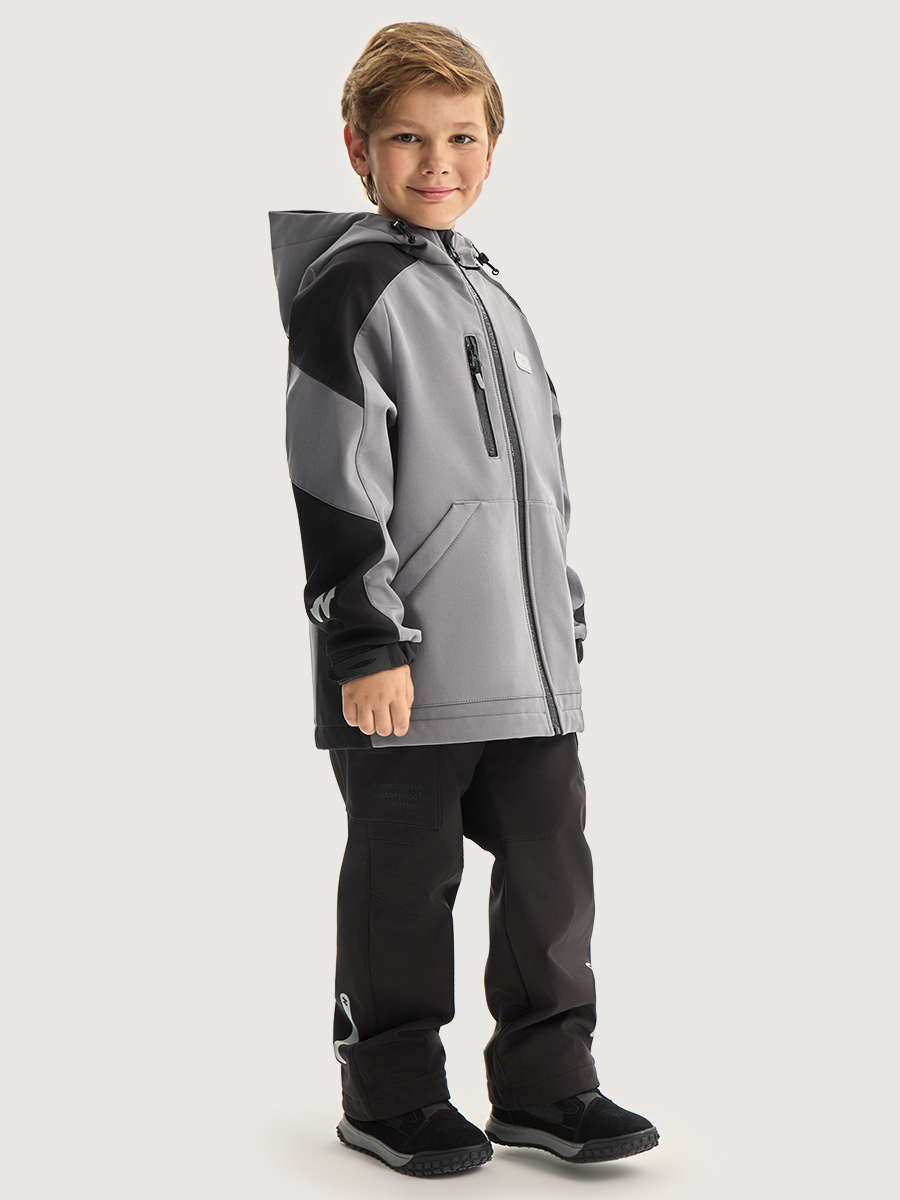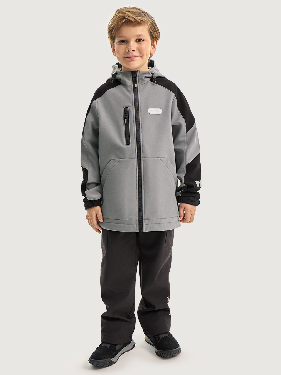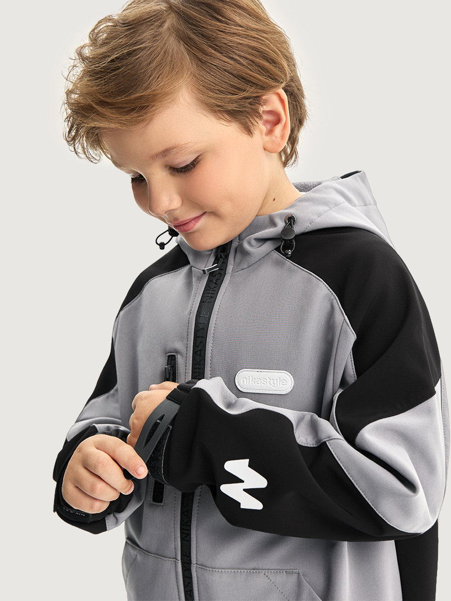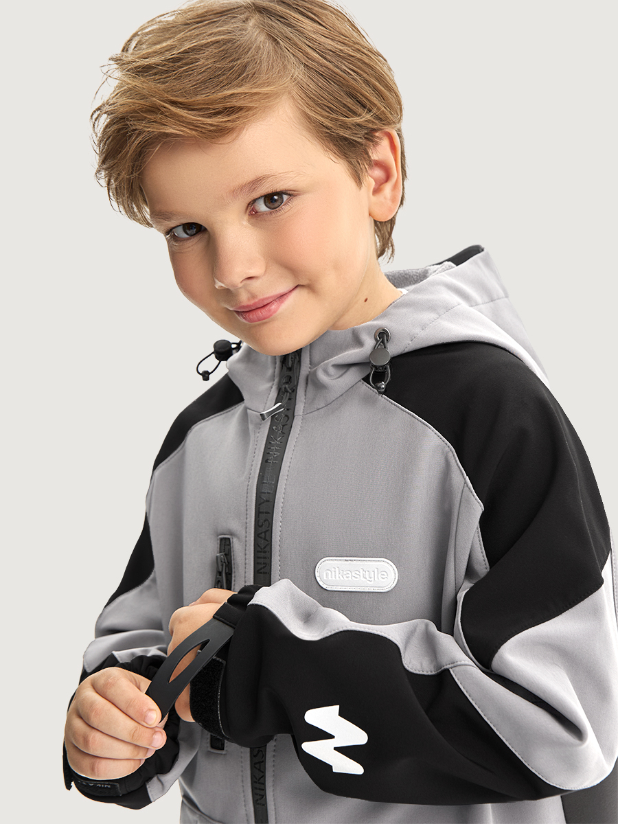Ветровка для мальчика СКАЙЛАЙН из Softshell идеально подходит активным детям на прогулках, которые много двигаются и не сидят на месте. Softshell - это инновационный материал нового поколения, внешний слой которого защищает от влаги и ветра, внутренний слой из флиса сохраняет тепло и отводит лишнюю влагу, а промежуточный мембранный слой имеет хорошую паропроницаемость и позволяет коже дышать. Softshell приятный на ощупь, легкий и эластичный материал, не сковывающий движения ребенка.
