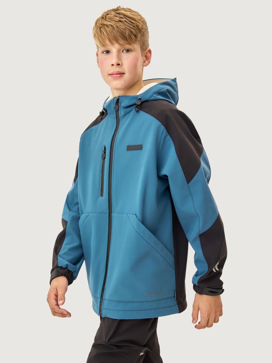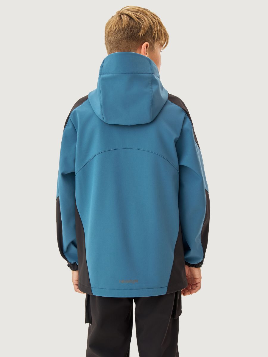 Ветровка для мальчика СКАЙЛАЙН из Softshell идеально подходит активным детям на прогулках, которые много двигаются и не сидят на месте. Softshell - это инновационный материал нового поколения, внешний слой которого защищает от влаги и ветра, внутренний слой из флиса сохраняет тепло и отводит лишнюю влагу, а промежуточный мембранный слой имеет хорошую паропроницаемость и позволяет коже дышать. Softshell приятный на ощупь, легкий и эластичный материал, не сковывающий движения ребенка.