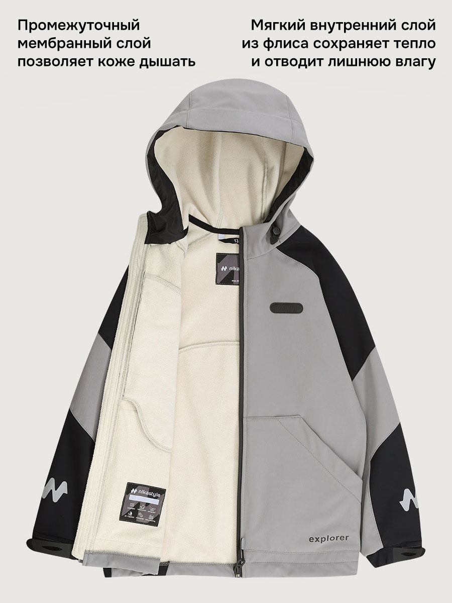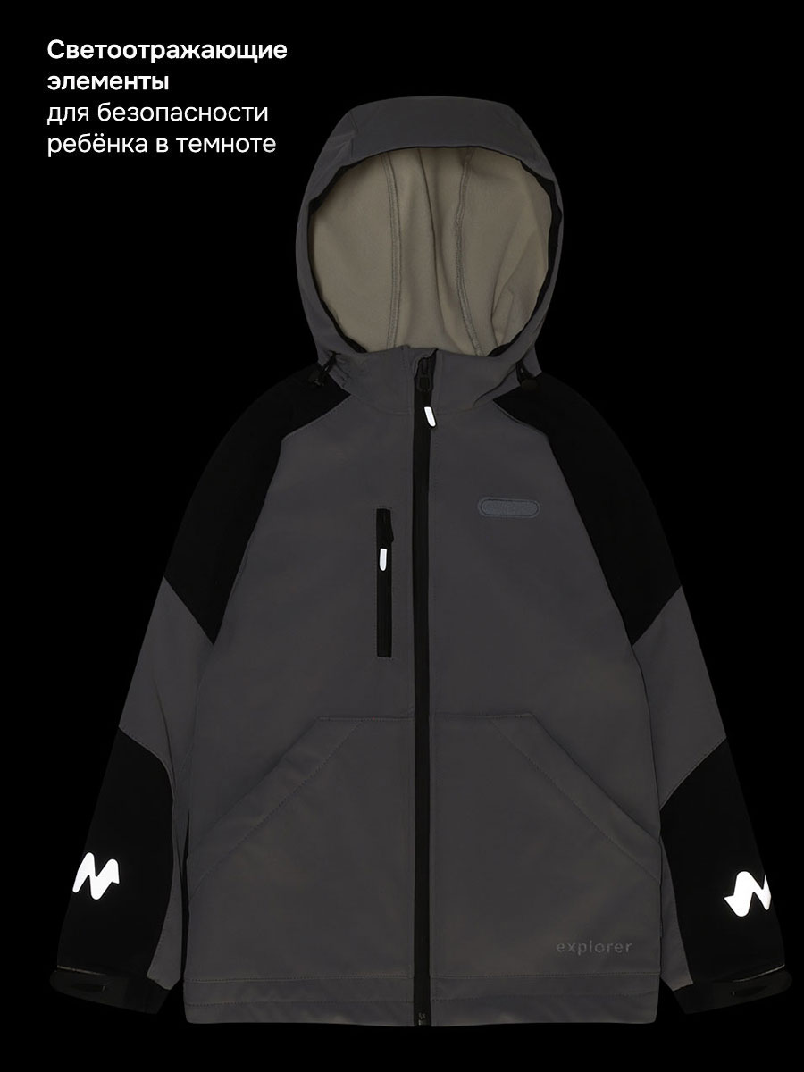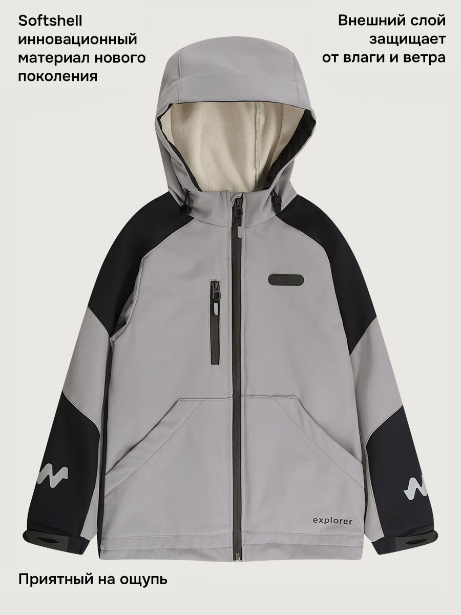 Ветровка для мальчика СКАЙЛАЙН из Softshell идеально подходит активным детям на прогулках, которые много двигаются и не сидят на месте. Softshell - это инновационный материал нового поколения, внешний слой которого защищает от влаги и ветра, внутренний слой из флиса сохраняет тепло и отводит лишнюю влагу, а промежуточный мембранный слой имеет хорошую паропроницаемость и позволяет коже дышать. Softshell приятный на ощупь, легкий и эластичный материал, не сковывающий движения ребенка.