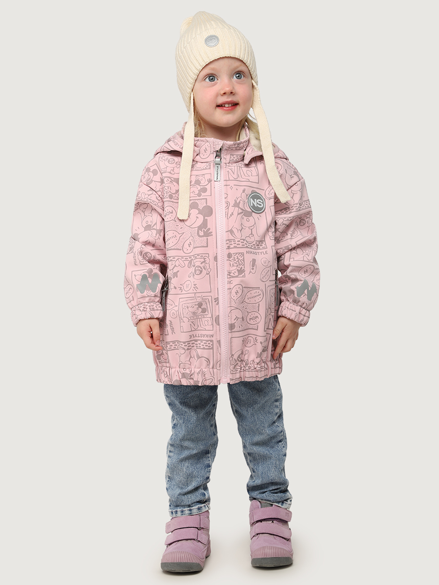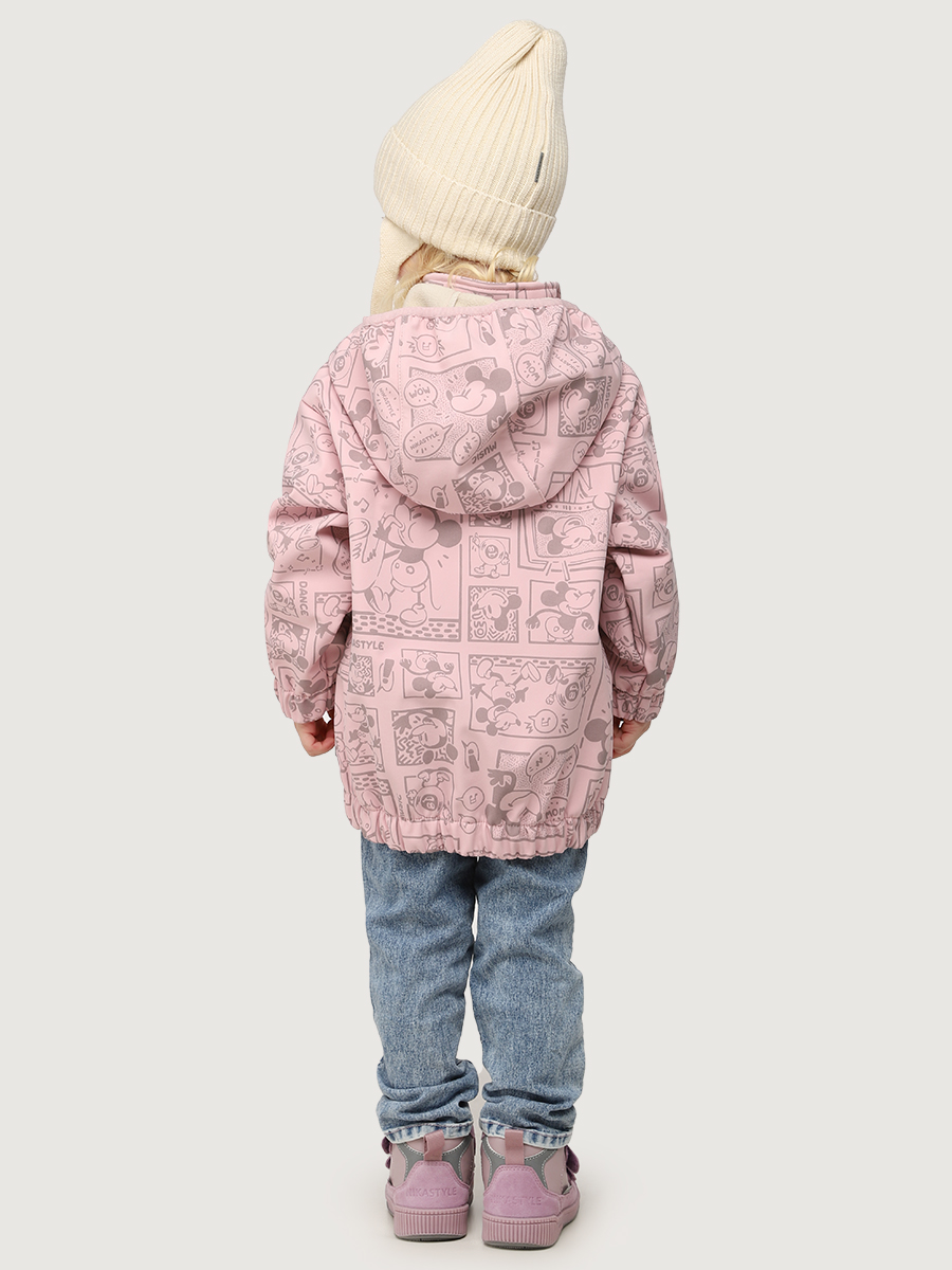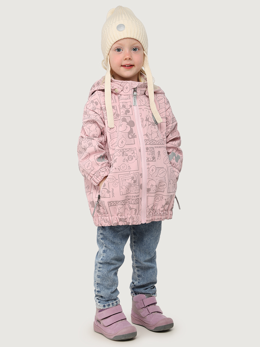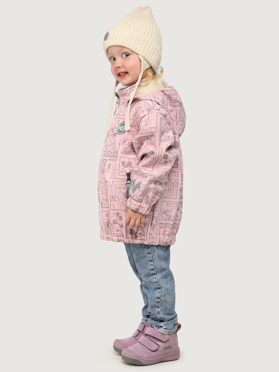 Ветровка для девочки КОМИКС из Softshell идеально подходит активным детям на прогулках, которые много двигаются и не сидят на месте. Softshell - это инновационный материал нового поколения, внешний слой которого защищает от влаги и ветра, внутренний слой из флиса сохраняет тепло и отводит лишнюю влагу, а промежуточный мембранный слой имеет хорошую паропроницаемость и позволяет коже дышать. Softshell приятный на ощупь, легкий и эластичный материал, не сковывающий движения ребенка. Дополнительно на ткань нанесен светоотражающий принт.