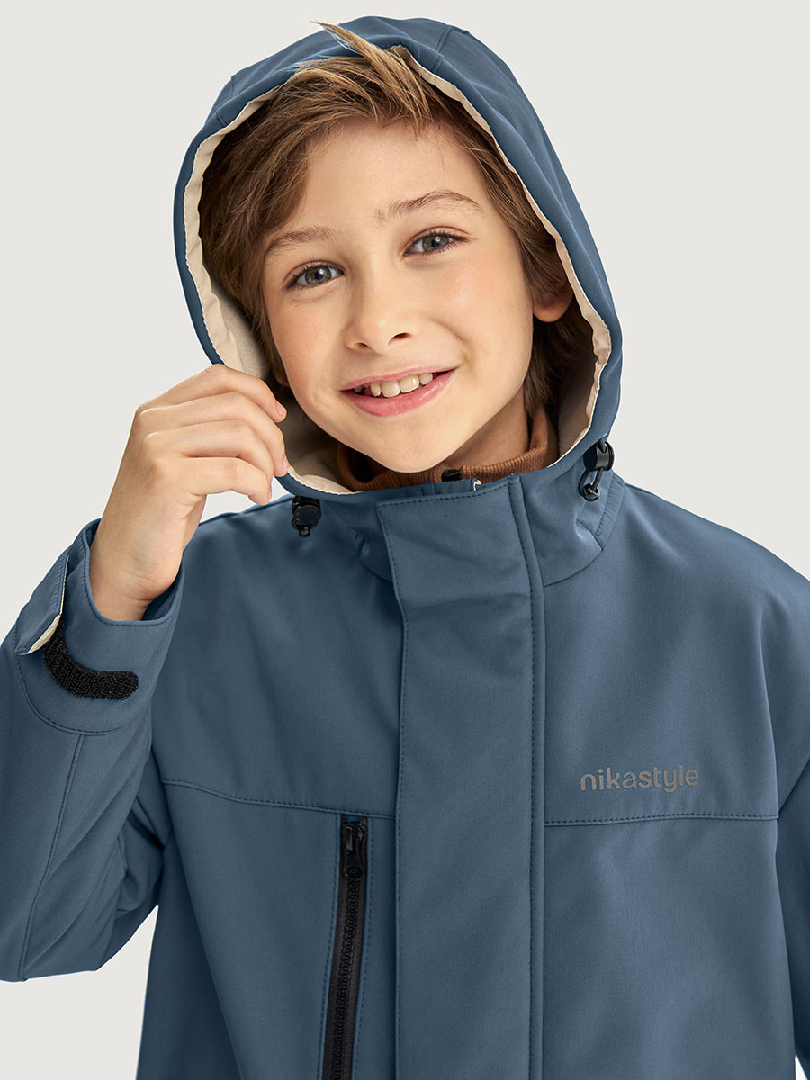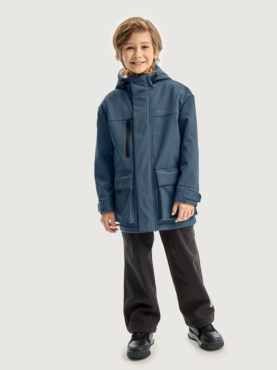 Ветровка для мальчика ДЖУНИОР из Softshell идеально подходит активным детям на прогулках, которые много двигаются и не сидят на месте. Softshell - это инновационный материал нового поколения, внешний слой которого защищает от влаги и ветра, внутренний слой из флиса сохраняет тепло и отводит лишнюю влагу, а промежуточный мембранный слой имеет хорошую паропроницаемость и позволяет коже дышать. Softshell приятный на ощупь, легкий и эластичный материал, не сковывающий движения ребенка.