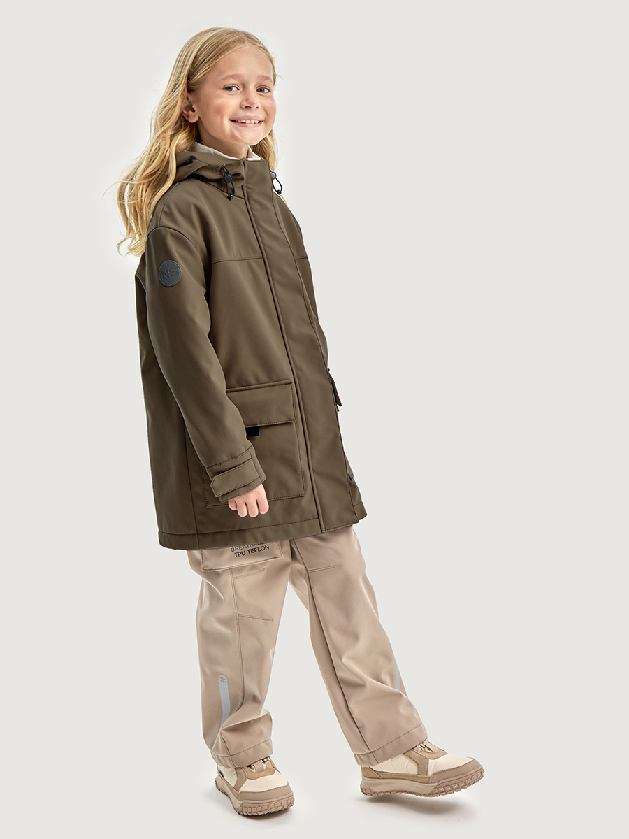 Ветровка для девочки ДЖУНИОР из Softshell идеально подходит активным детям на прогулках, которые много двигаются и не сидят на месте. Softshell - это инновационный материал нового поколения, внешний слой которого защищает от влаги и ветра, внутренний слой из флиса сохраняет тепло и отводит лишнюю влагу, а промежуточный мембранный слой имеет хорошую паропроницаемость и позволяет коже дышать. Softshell приятный на ощупь, легкий и эластичный материал, не сковывающий движения ребенка.