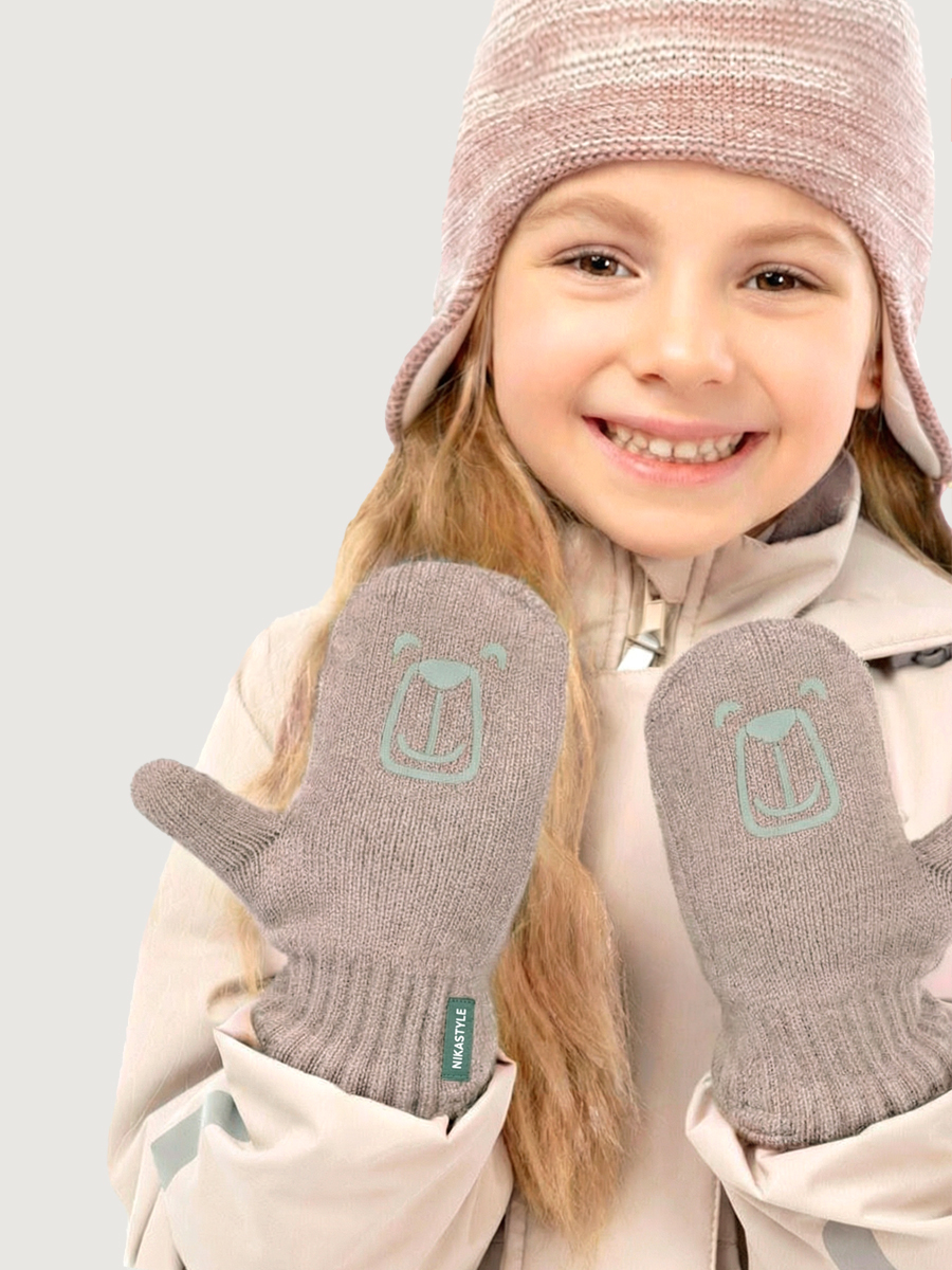 Однослойные детские варежки БАЛУ из вискозной пряжи, со светоотражающим принтом. Варежки на тесьме -антипотеряшке. Комфортная температура эксплуатации от -5°С до +10°С Варежки отлично сочетаются с другими изделиями NIKASTYLE.
