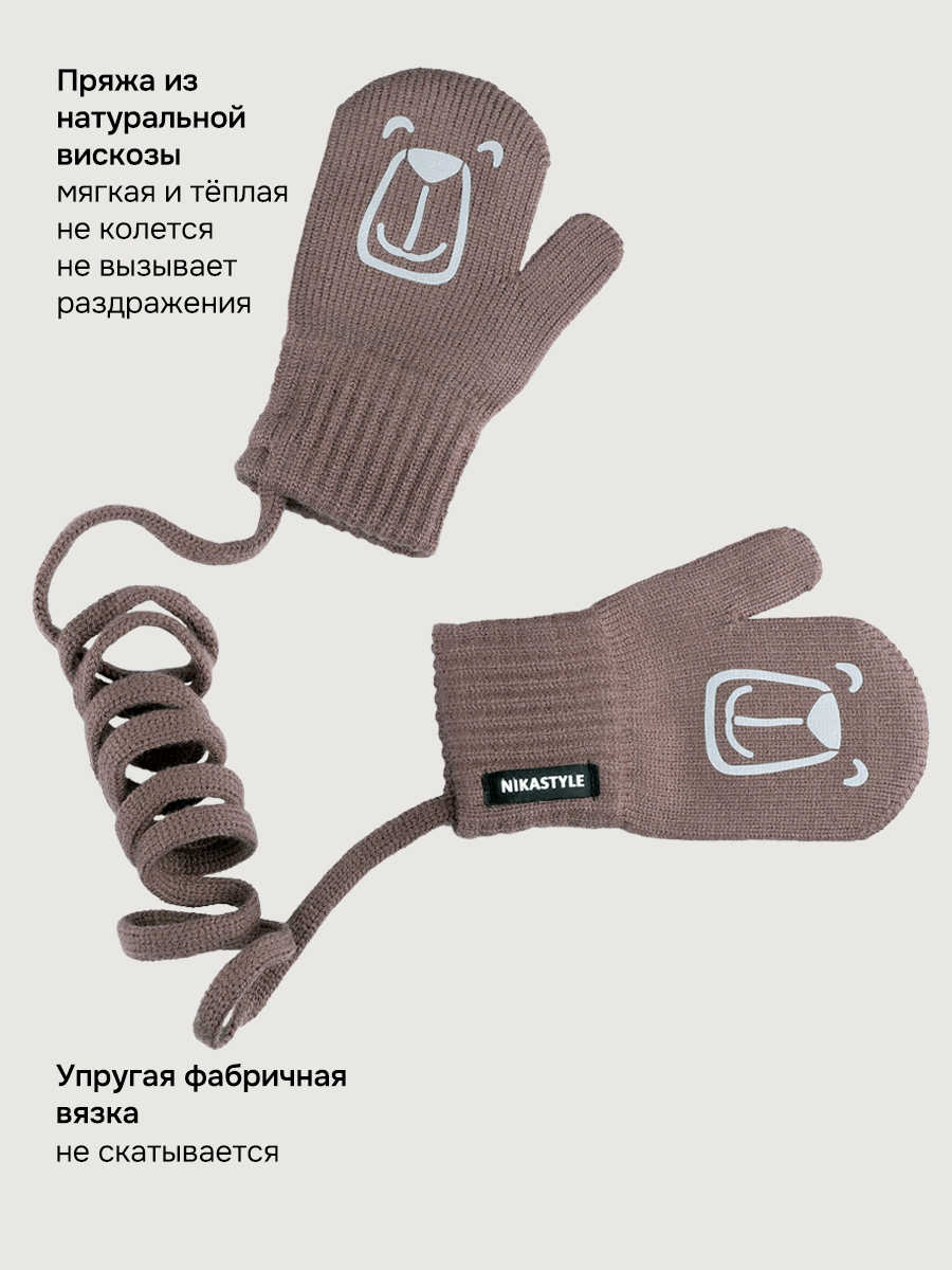 Однослойные детские варежки БАЛУ из вискозной пряжи, со светоотражающим принтом. Варежки на тесьме -антипотеряшке. Комфортная температура эксплуатации от -5°С до +10°С Варежки отлично сочетаются с другими изделиями NIKASTYLE.