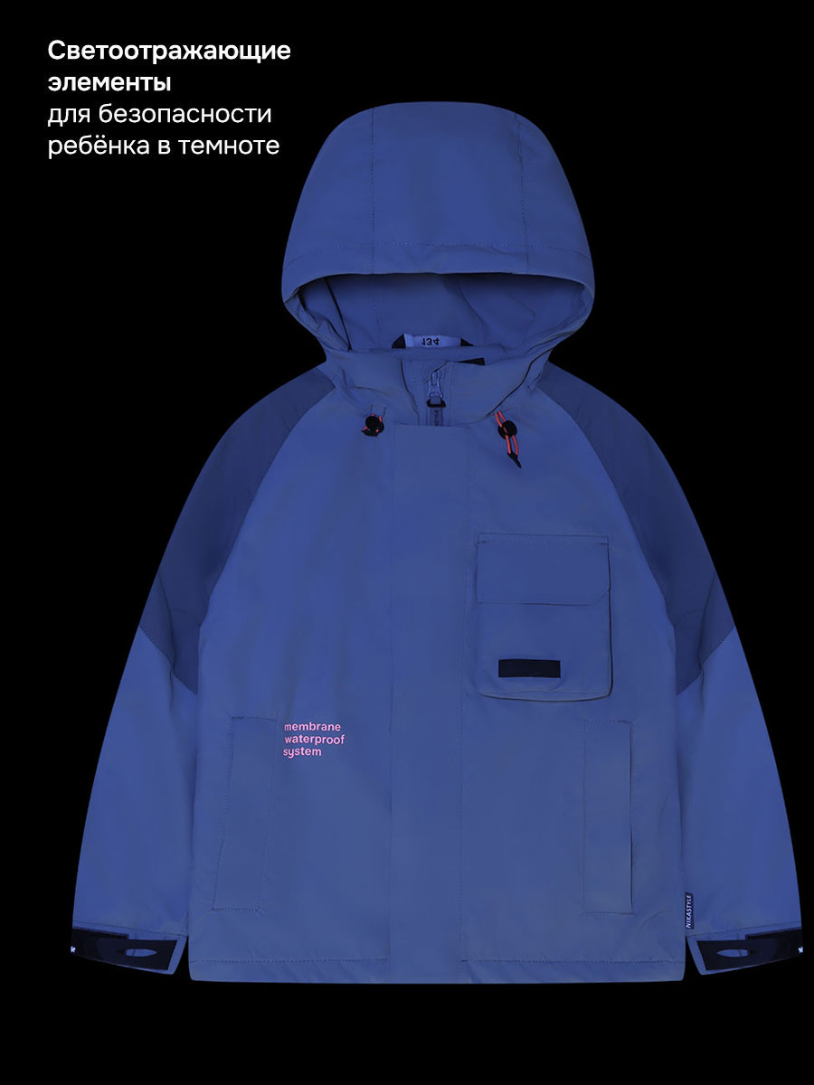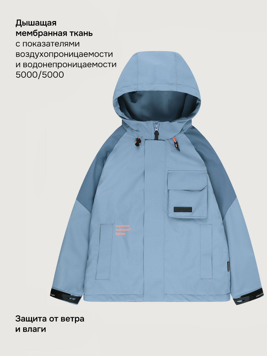 Мембранная ткань - это непродуваемый и водонепроницаемый материал, который надежно защищает от ветра и влаги. Благодаря дышащим свойствам мембраны ребенку будет комфортно в любую погоду, и он не вспотеет. Флисовая подкладка отводит влагу и имеет хорошие теплоизоляционные свойства.