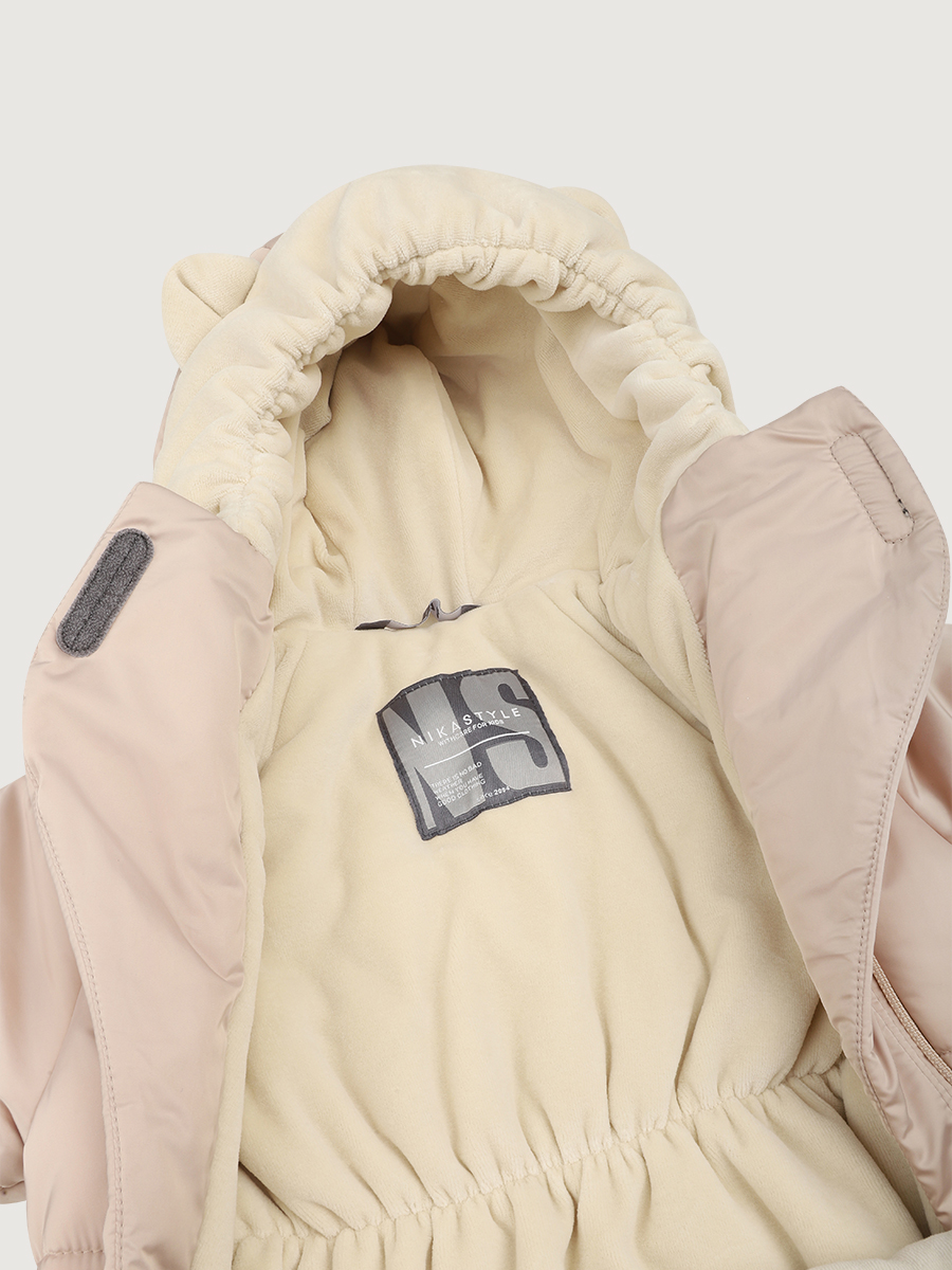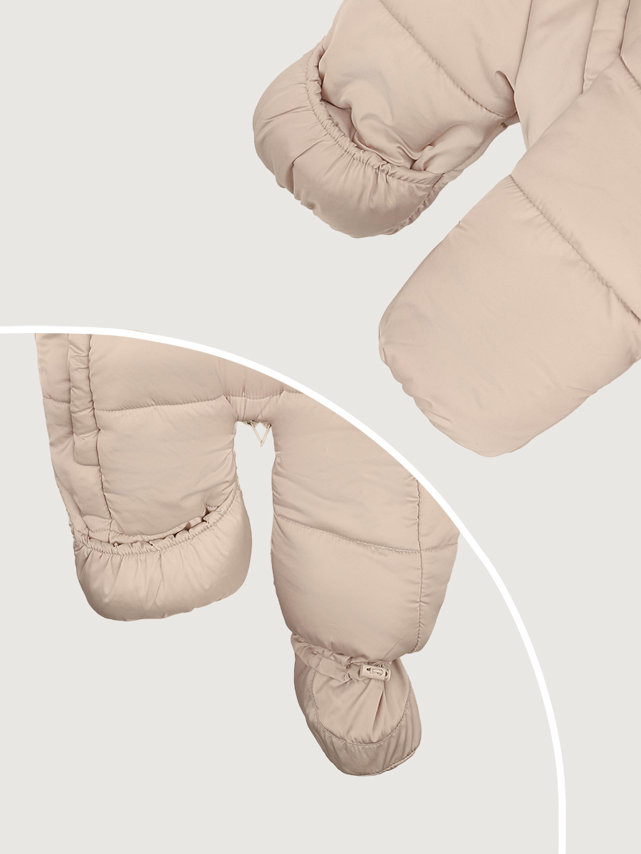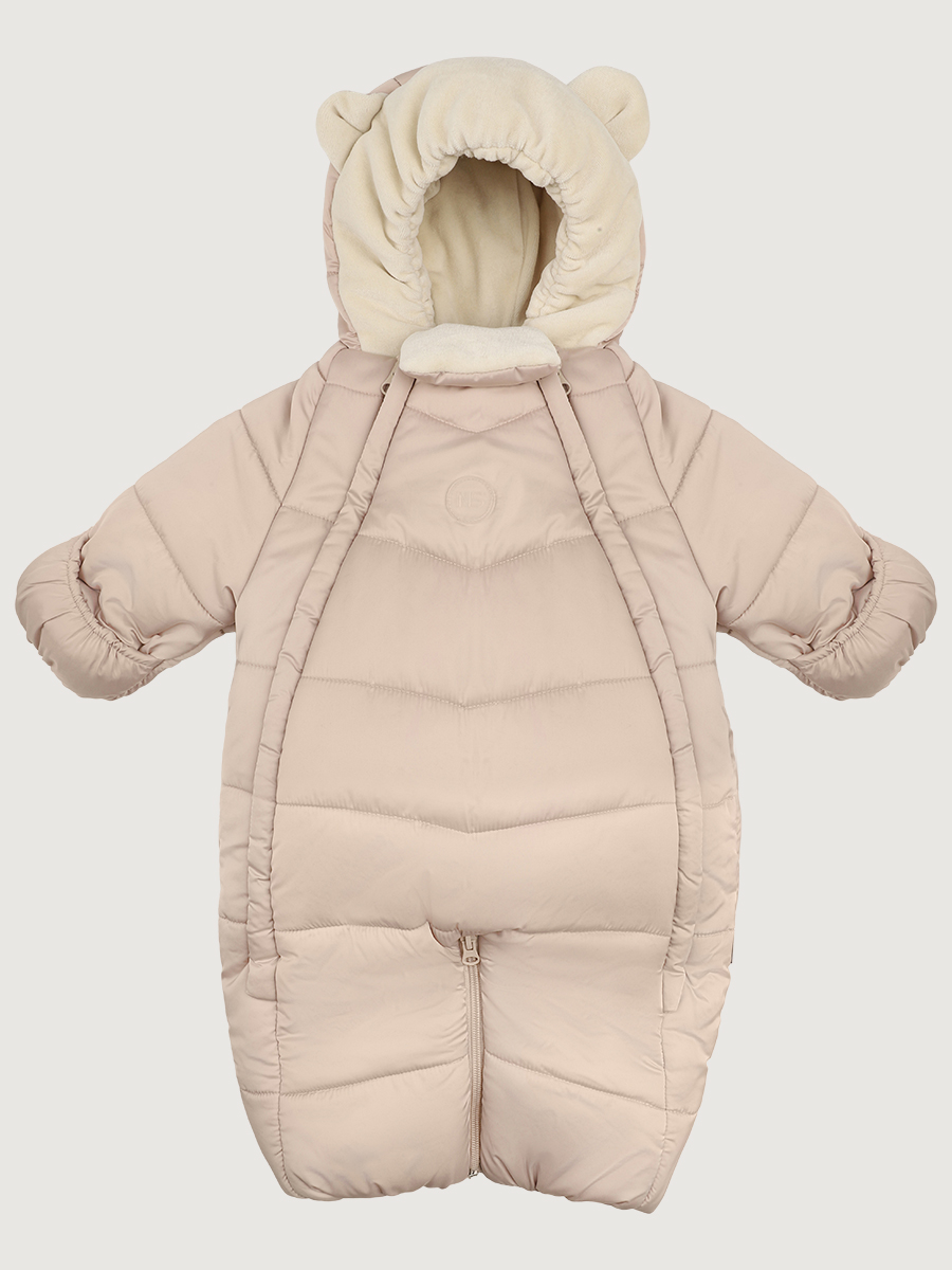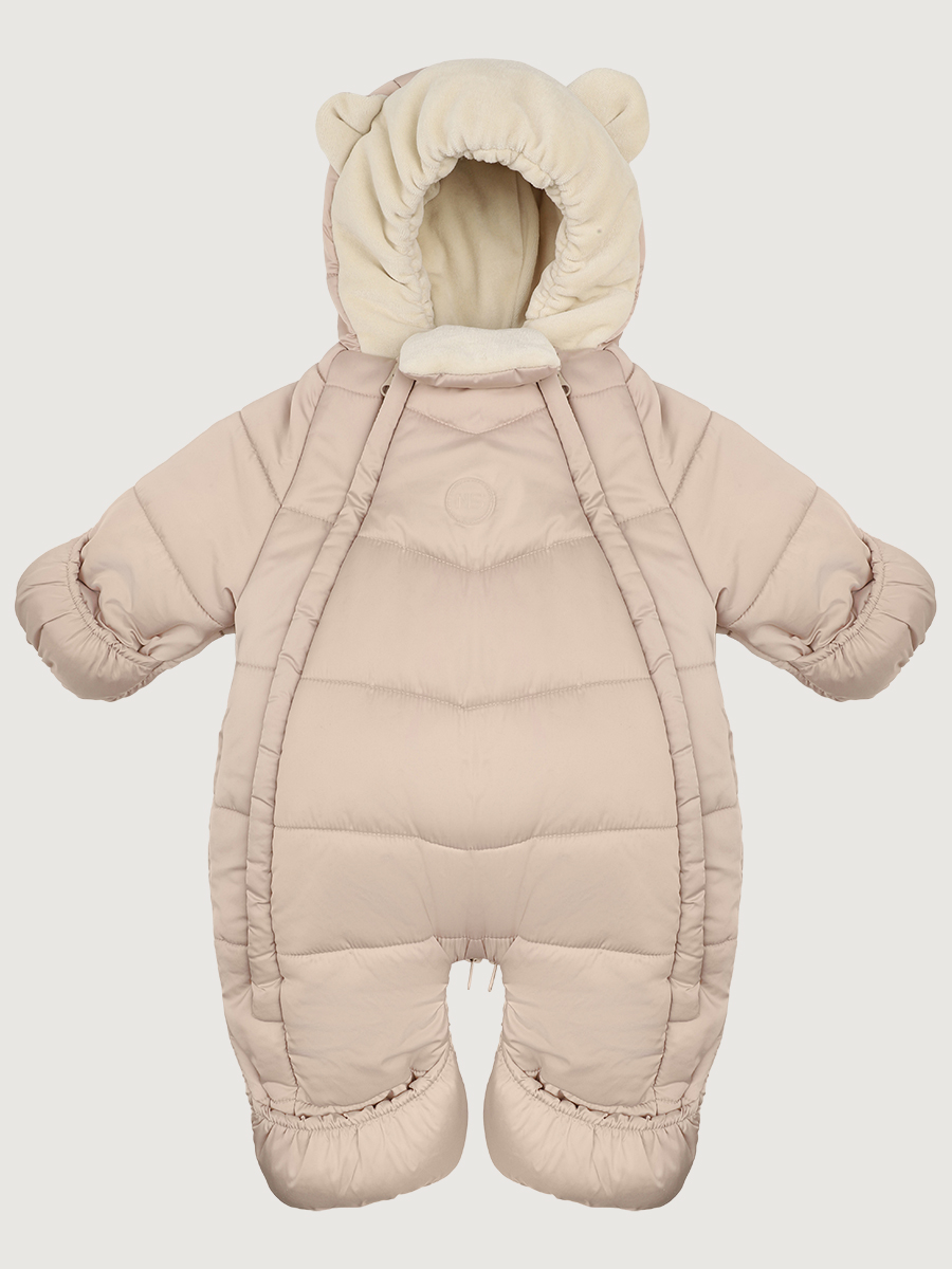 Комбинезон с помощью молний трансформируется из конверта для новорожденных в комбинезон, модификация выбирается в зависимости от возраста. Комбинезон из ткани с ветро- и водонепроницаемыми пропитками. Гипоаллергенная мягкая подкладка из 100% хлопка-велюра идеальна для малышей. В комплекте съемные пинетки.