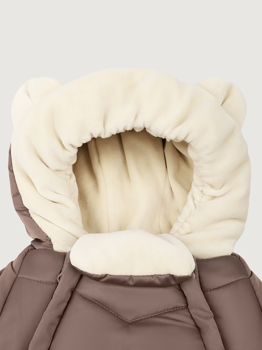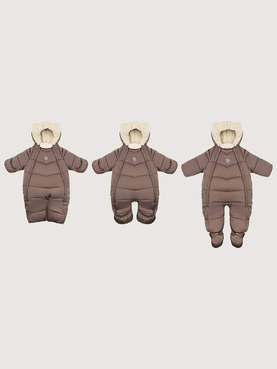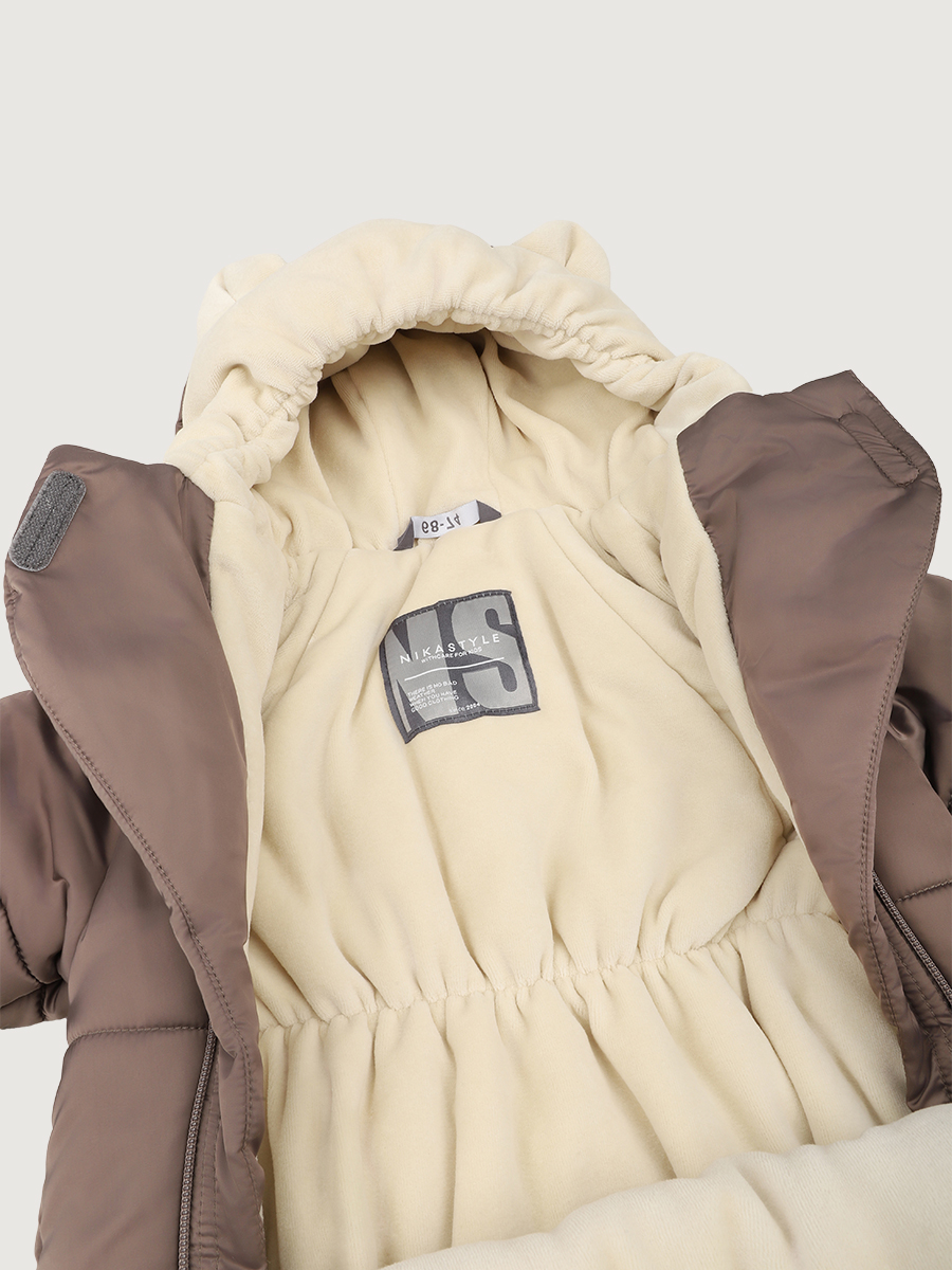 Комбинезон с помощью молний трансформируется из конверта для новорожденных в комбинезон, модификация выбирается в зависимости от возраста. Комбинезон из ткани с ветро- и водонепроницаемыми пропитками. Гипоаллергенная мягкая подкладка из 100% хлопка-велюра идеальна для малышей. В комплекте съемные пинетки.