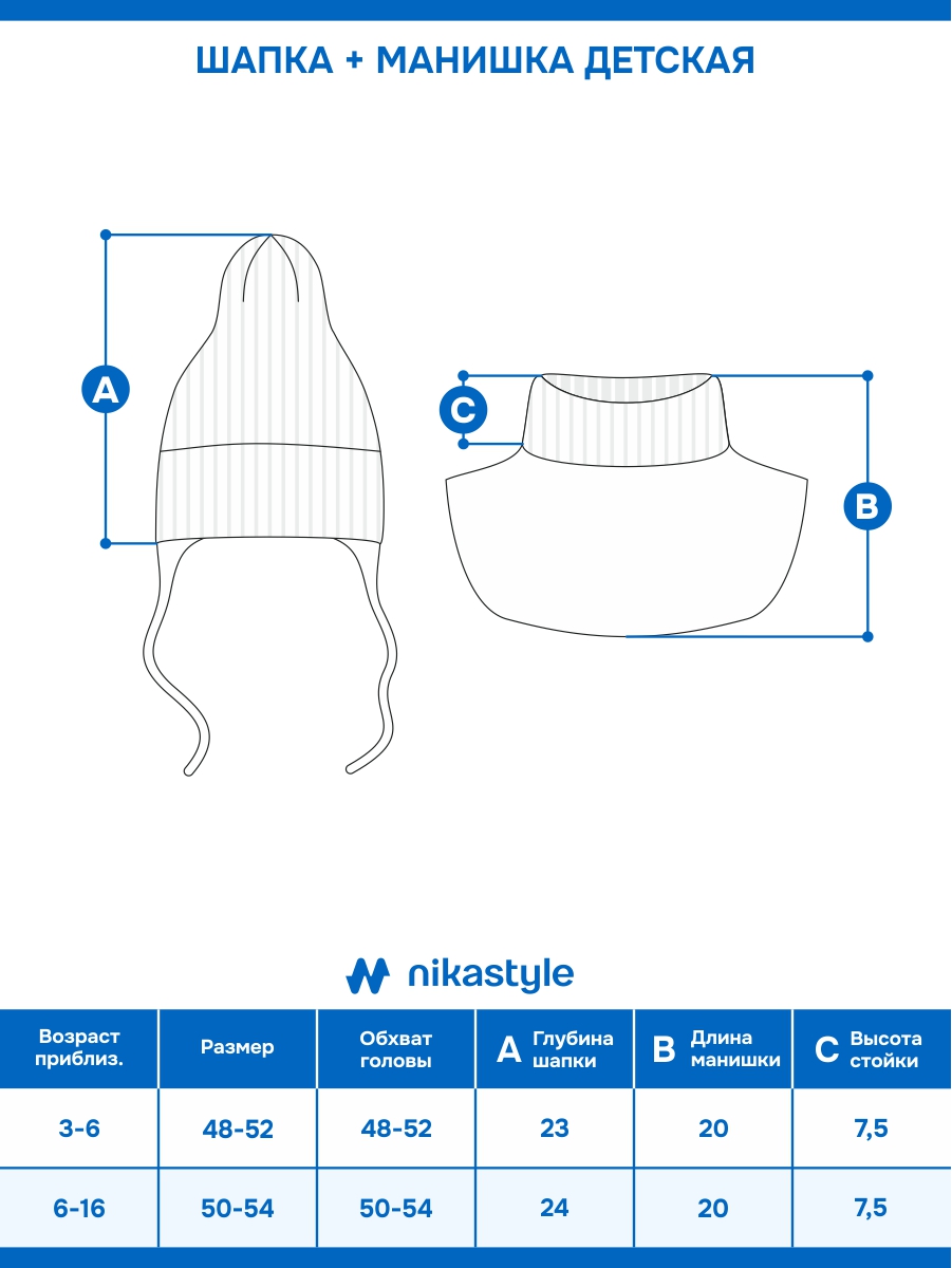 Комфортная температура эксплуатации от 0°С до -25°С. Комплект отлично сочетается со всей верхней одеждой и другими изделиями коллекции NIKASTYLE.