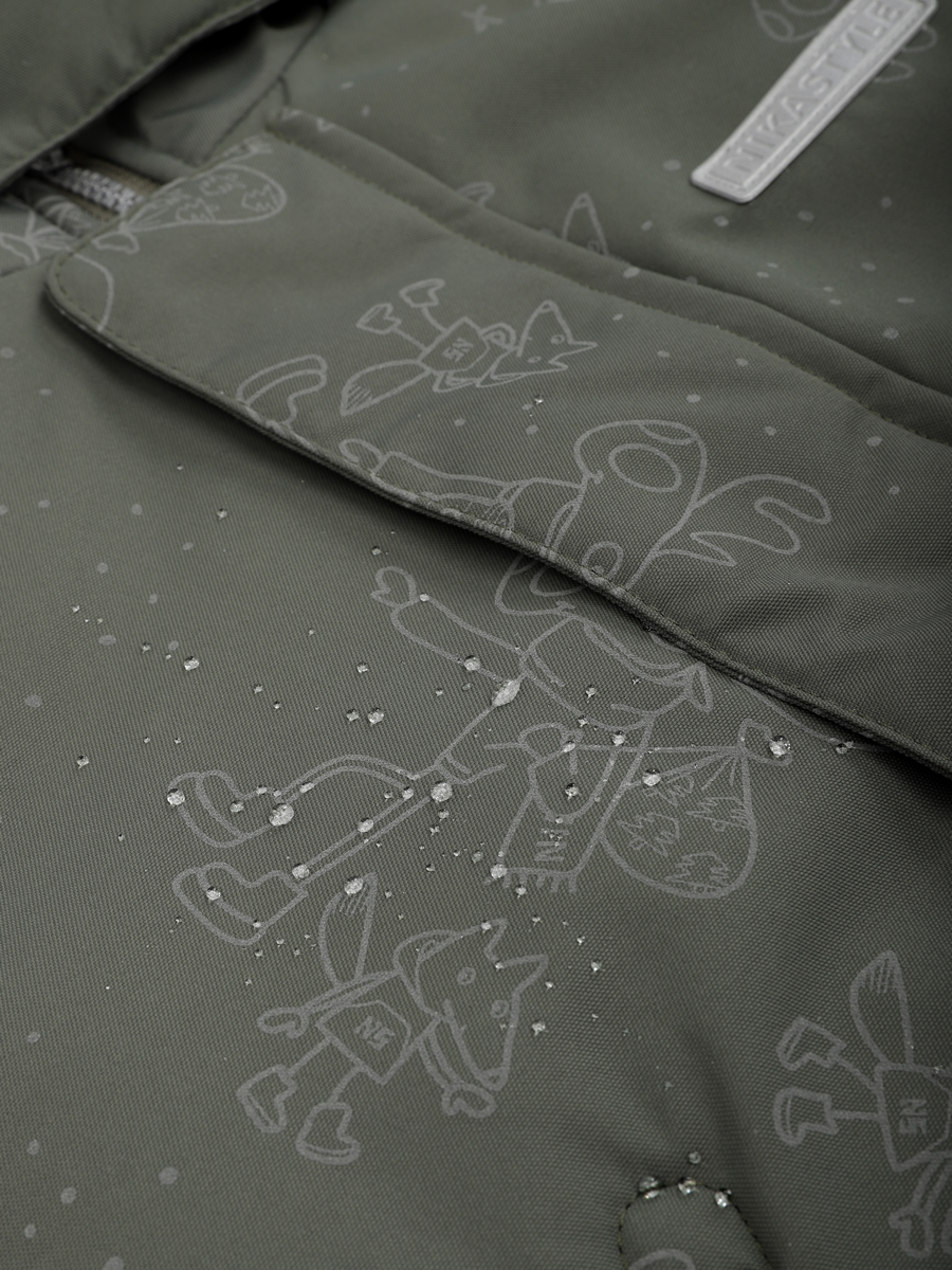 Костюм из мембранной ткани 5000/5000 с водо- грязеотталкивающей технологией TEFLON. Мембранная ткань это не продуваемый и водонепроницаемый материал, который надежно защищает от ветра и влаги. Благодаря дышащим свойствам мембраны ребенку будет комфортно в любую погоду и он не вспотеет. Дополнительно на ткань нанесен светоотражающий принт. Ткань обработана снаружи экологически чистым протектором TEFLON для защиты от воды и грязи.