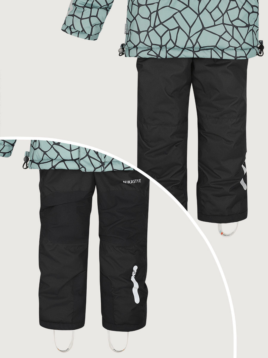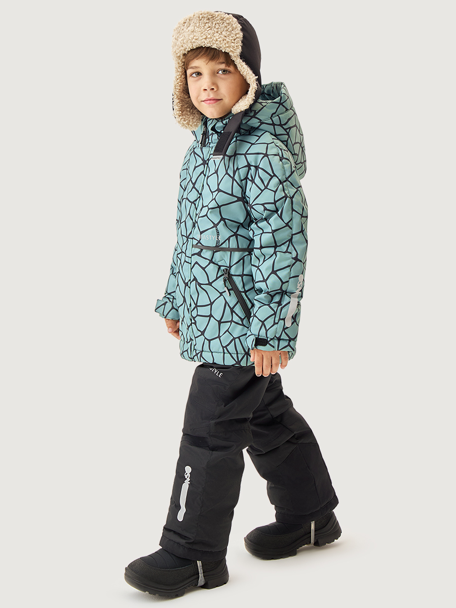 Костюм из мембранной ткани 5000/5000 с водо- грязеотталкивающей технологией TEFLON. Мембранная ткань это не продуваемый и водонепроницаемый материал, который надежно защищает от ветра и влаги. Благодаря дышащим свойствам мембраны ребенку будет комфортно в любую погоду и он не вспотеет. Ткань обработана снаружи экологически чистым протектором TEFLON для защиты от воды и грязи.