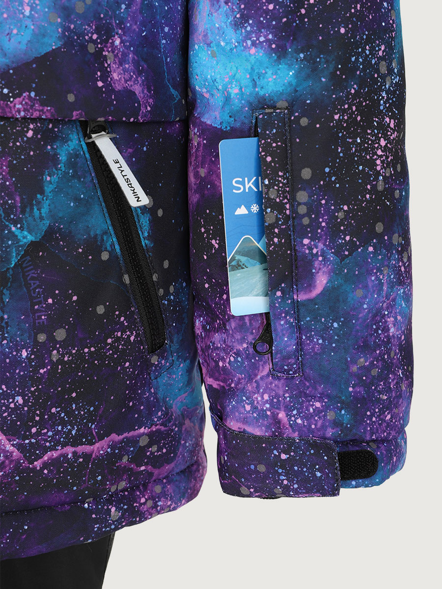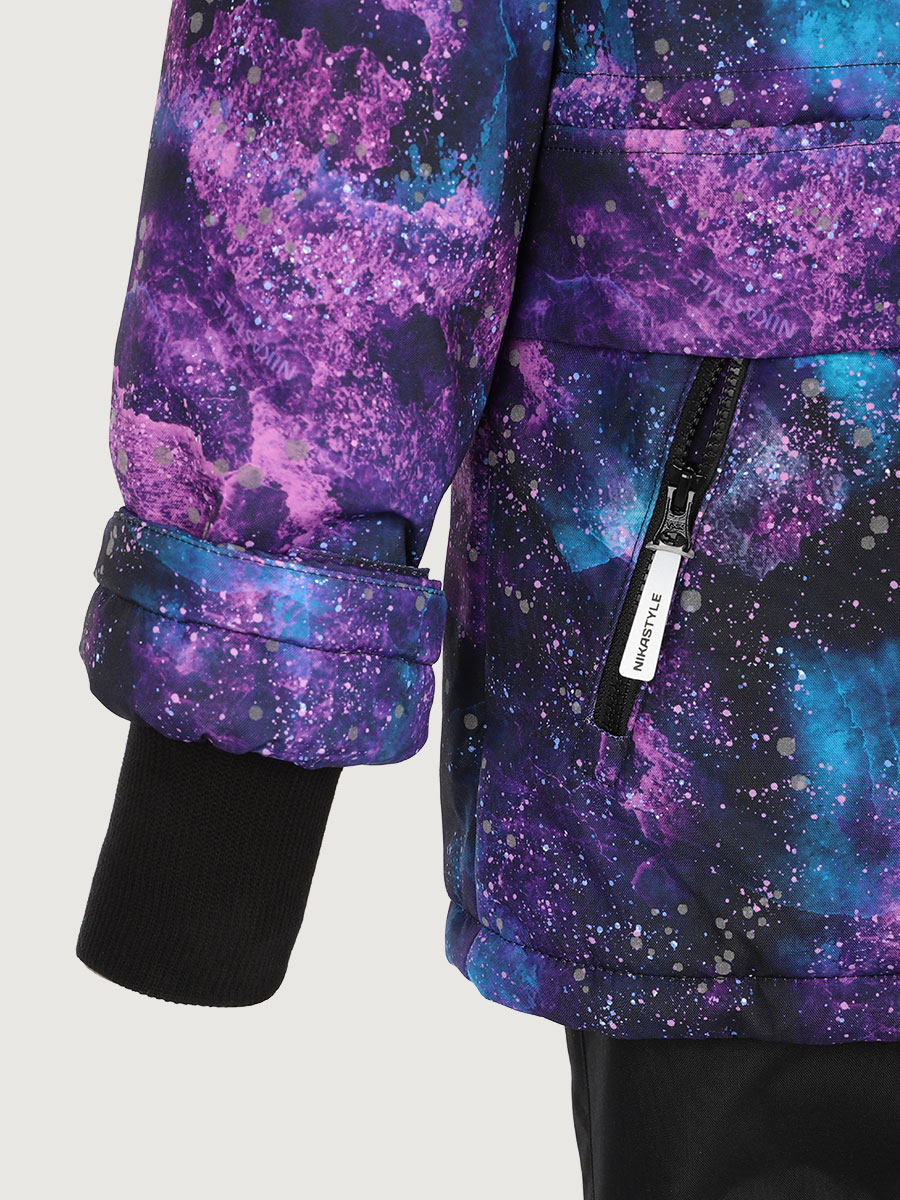 Костюм ВСЕЛЕННАЯ из мембранной ткани 5000/5000 с водо-грязеотталкивающей технологией TEFLON. Мембранная ткань это не продуваемый и водонепроницаемый материал, который надежно защищает от ветра и влаги. Благодаря дышащим свойствам мембраны ребенку будет комфортно в любую погоду, и он не вспотеет. Дополнительно на ткань нанесен светоотражающий принт. Ткань обработана снаружи экологически чистым протектором TEFLON для защиты от воды и грязи.