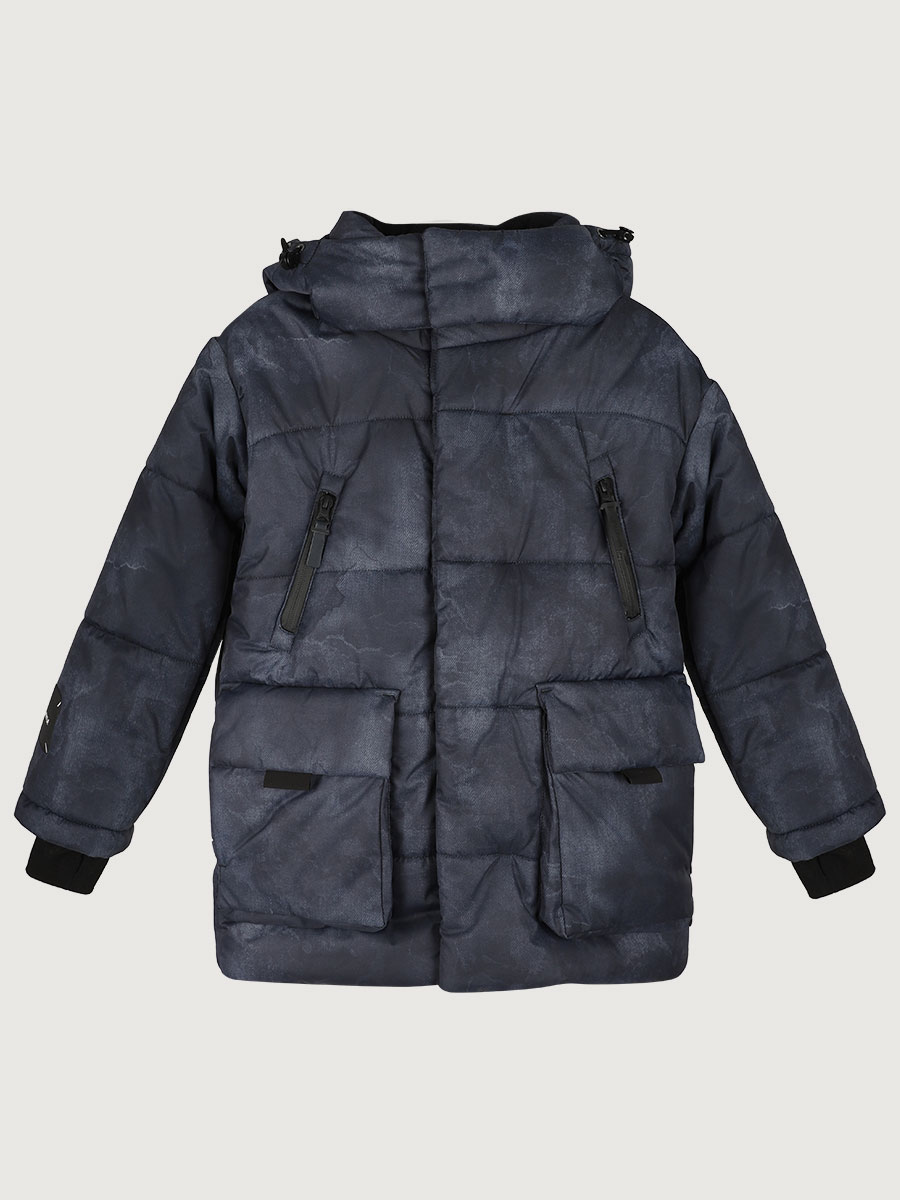 - кулиса для регулировки объема по капюшону и низу куртки.