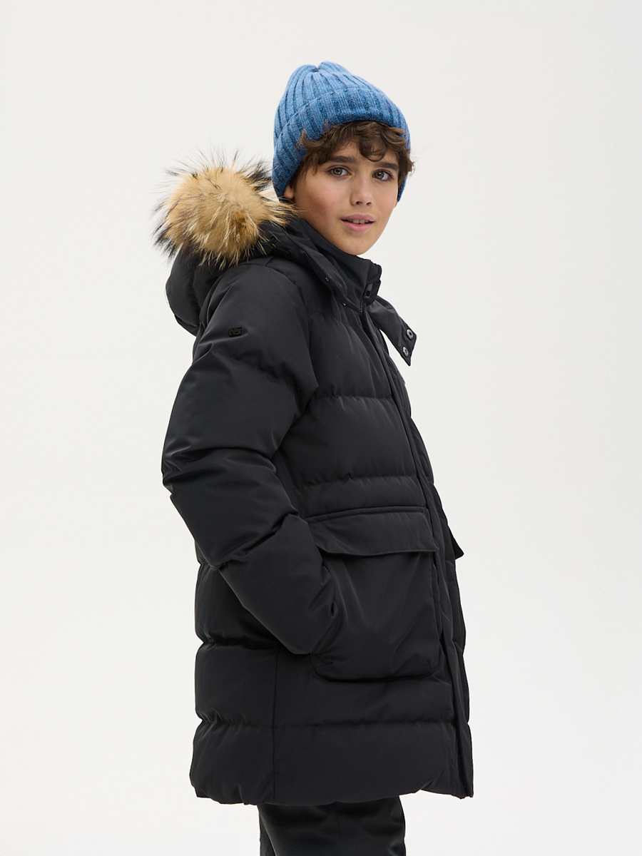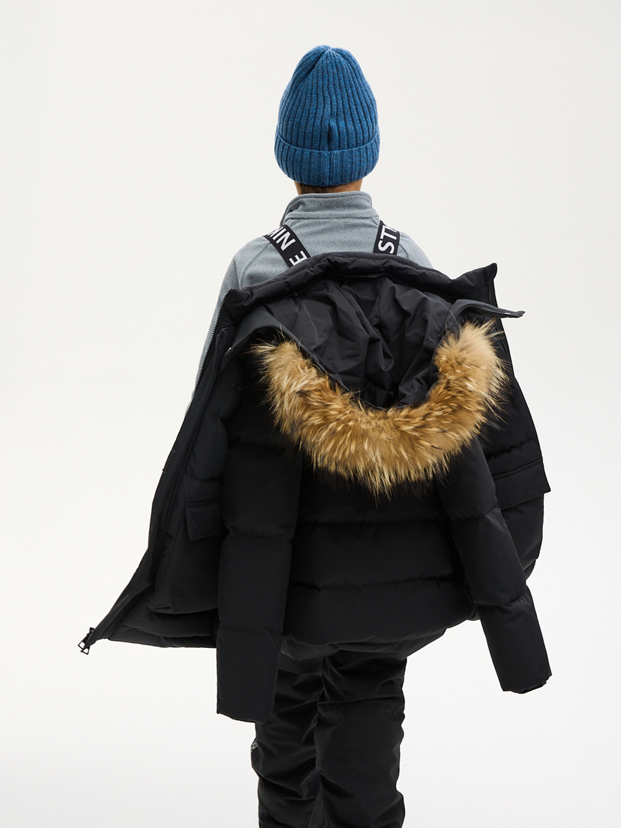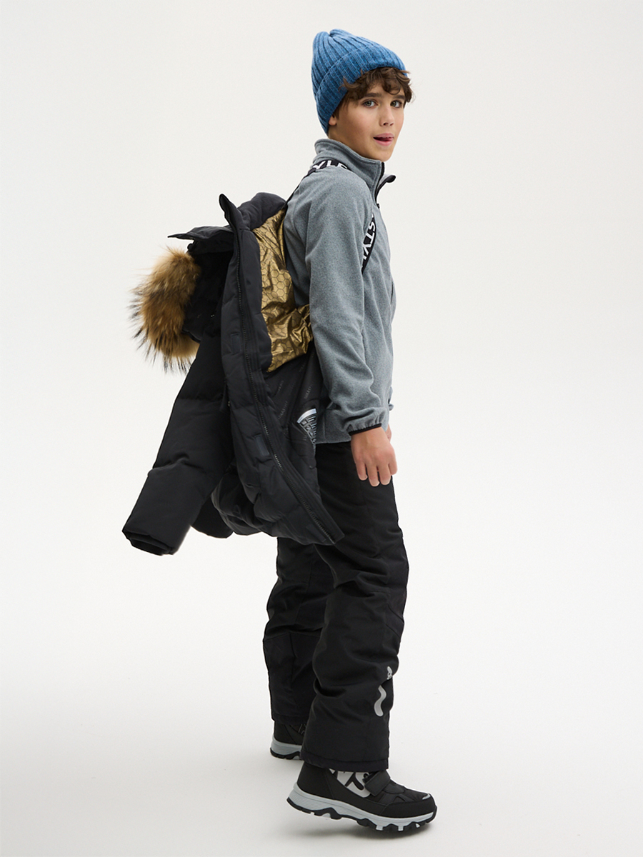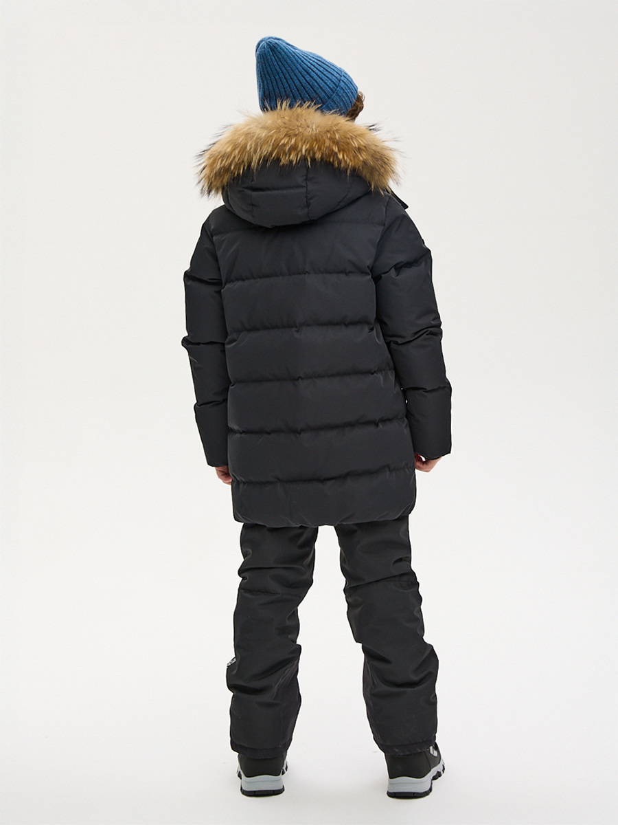 Брендированная пуходержащая подкладка с технологией OMNI-HEAT за счет металлизированных частиц алюминиевой фольги отражает тепло, исходящее от тела, не позволяя ему выходить за пределы изделия, при этом отводя излишки влаги, обеспечивая комфортную эксплуатацию. Съемный капюшон на кнопках с опушкой из натурального меха енота. Функционал: • центральная застежка на двухзамковую молнию, • ветрозащитная планка на кнопке и липах, • объемные карманы с двойным входом с клапанами на кнопках, • кулиса для регулировки объема по капюшону и по спинке на талии, • внутренние бретели для возможности снять верхнюю часть изделия в помещении. Мы все продумали до мелочей, поэтому пуховик дополнительно оснащен мягкими трикотажными манжетами в рукавах, эластичной резинкой по низу рукавов и по низу спинки, светоотражающими элементами для безопасности ребенка в темное время суток. Комфортная температура эксплуатации от -5°С до -30°С. Рекомендации: если пуховик помялся во время транспортировки вернуть ему первоначальный вид можно с помощью отпаривателя. Отпаривать со стороны подкладки на расстоянии 20 см от пуховика. Меховую опушку можно отпарить или расчесать, в любом случае со временем она расправится естественным образом. В случае легких загрязнений протрите ткань влажной салфеткой, при сильных загрязнениях рекомендуется химчистка.