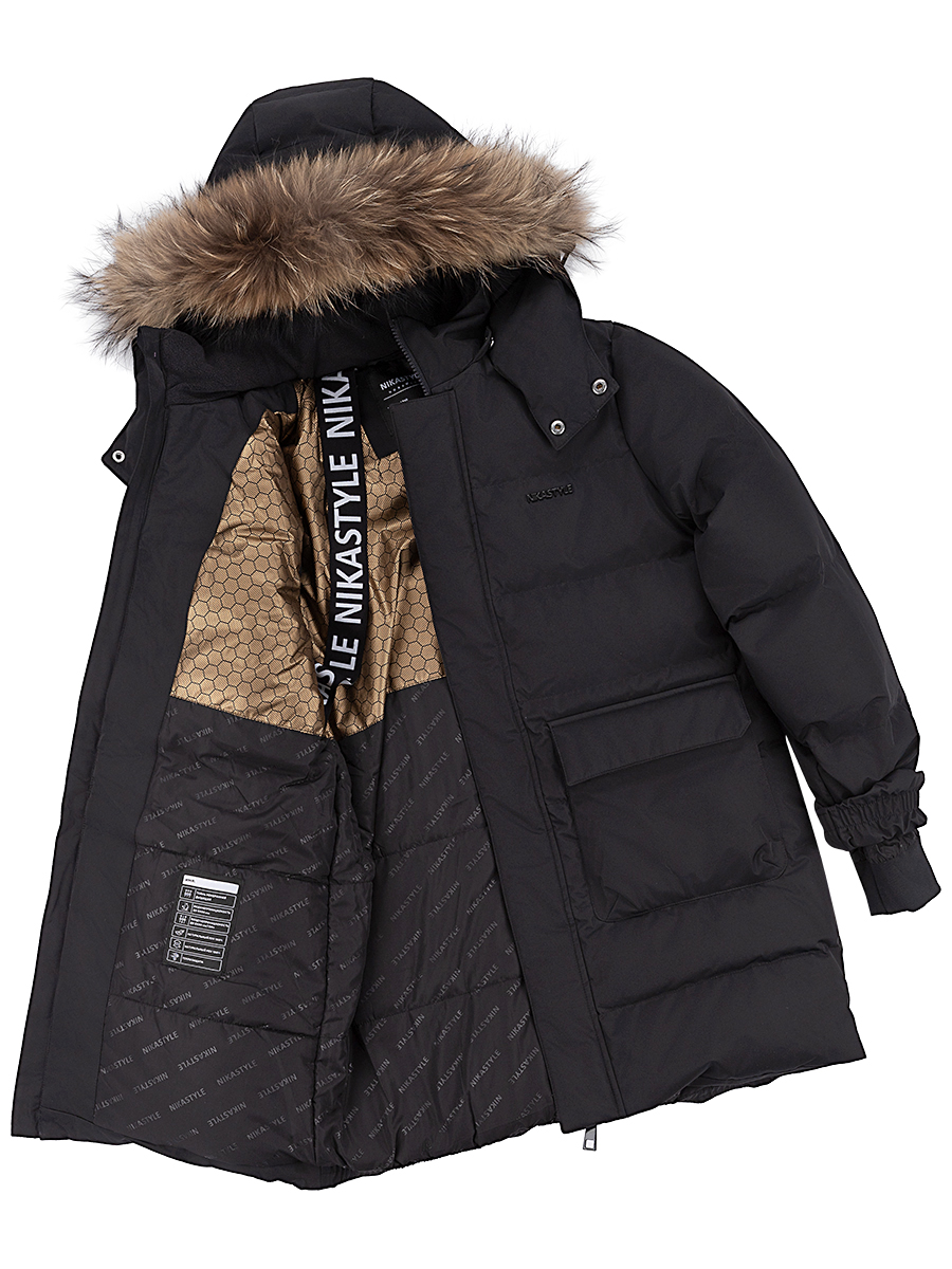 Пуховик стеганый удлиненный из премиальной линейки NORD ICE бренда NIKASTYLE. Пуховик изготовлен из мембранной ткани 5000/5000 с высокими показателями воздухопроницаемости и водонепроницаемости. Ткань обработана снаружи экологически чистым протектором TEFLON для защиты от воды и грязи.