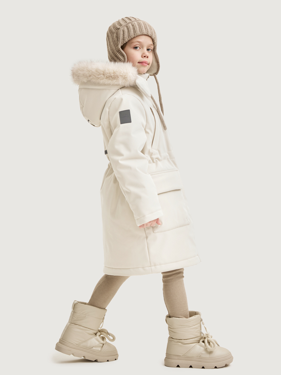 Парка из мембранной ткани 3000/3000. Мембранная ткань это непродуваемый и водонепроницаемый материал, который надежно защищает от ветра и влаги. Благодаря дышащим свойствам мембраны ребенку будет комфортно в любую погоду и он не вспотеет.