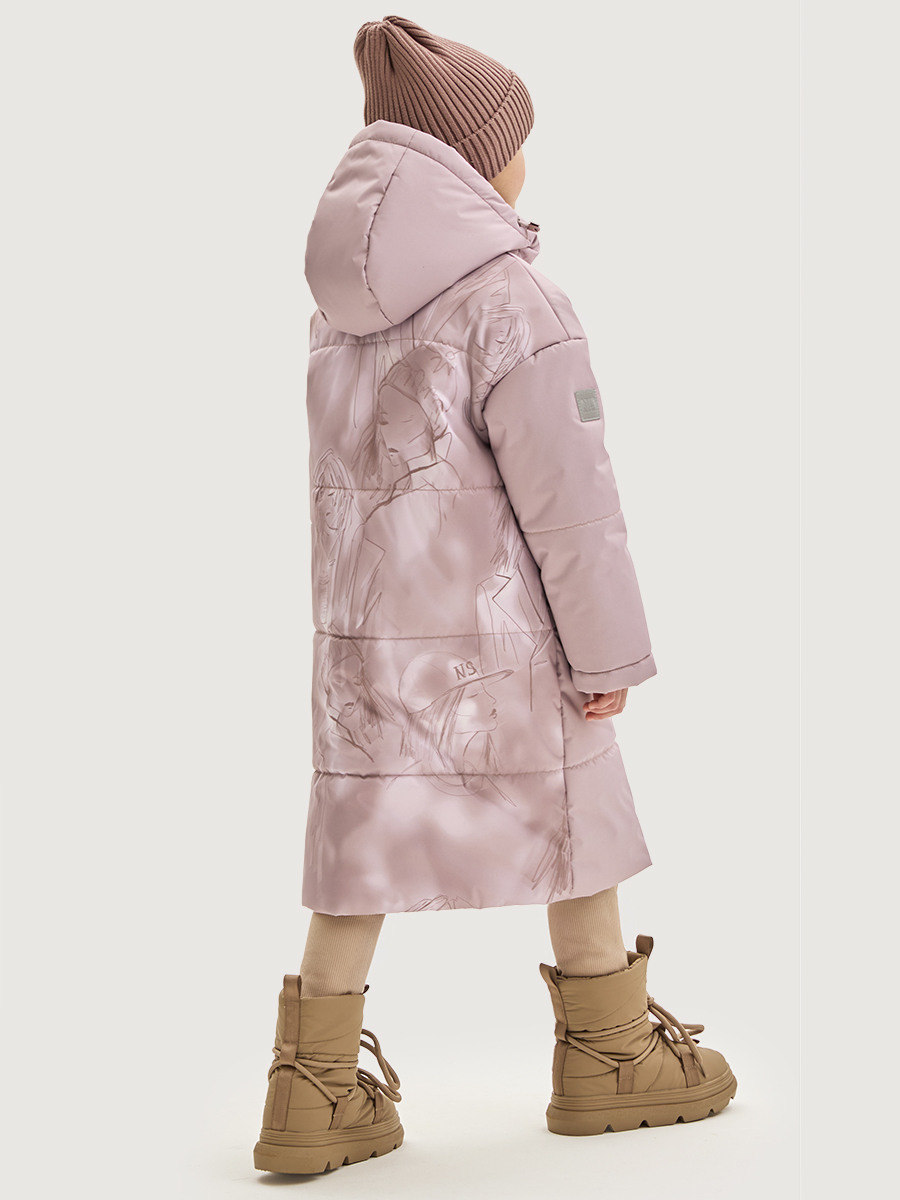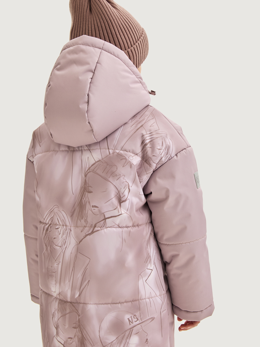 Стеганое уютное пальто-одеяло ЛАЙТ с эксклюзивным ярким принтом на спине, с удобной застежкой на магнитные кнопки. Пальто из мембранной ткани 5000/5000 с водо- грязеотталкивающей технологией TEFLON.