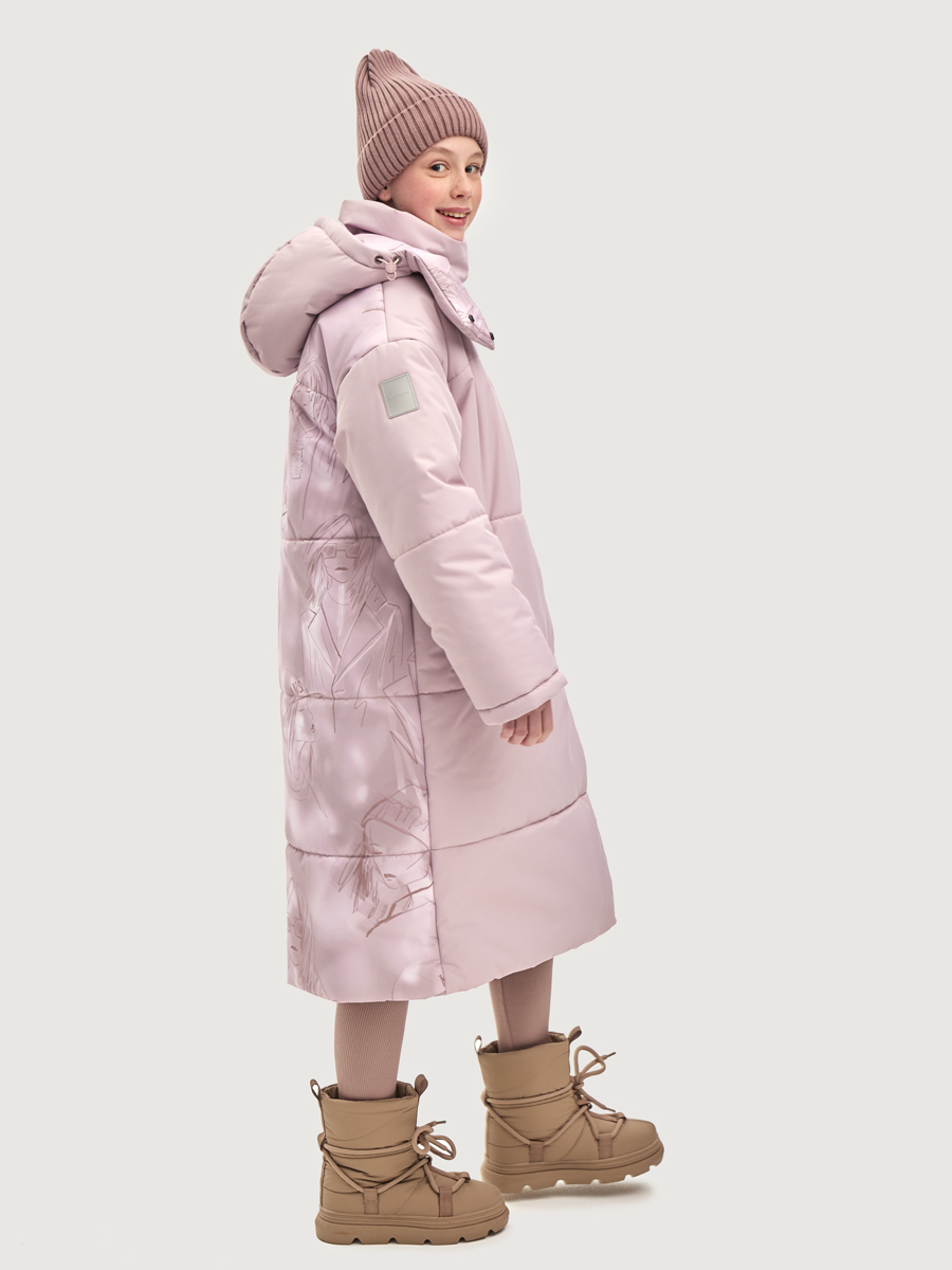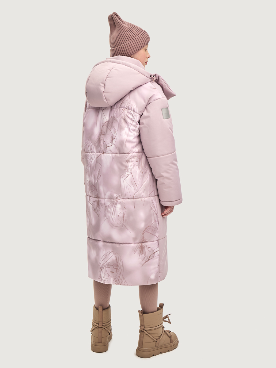 Стеганое уютное пальто-одеяло ЛАЙТ с эксклюзивным ярким принтом на спине, с удобной застежкой на магнитные кнопки. Пальто из мембранной ткани 5000/5000 с водо- грязеотталкивающей технологией TEFLON.