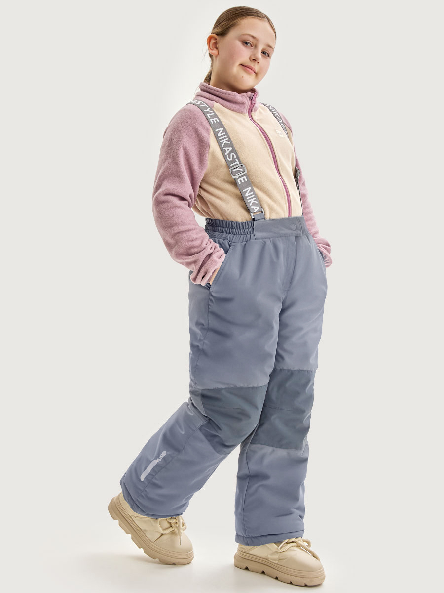 - брюки с регулируемыми бретелями, удобными карманами, флисовой подкладкой до середины бедра,