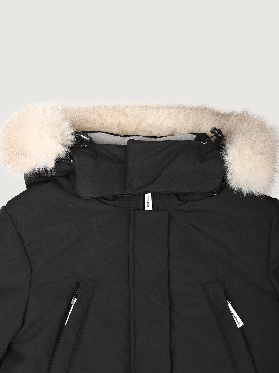 - съемный капюшон и меховая опушка на молнии,