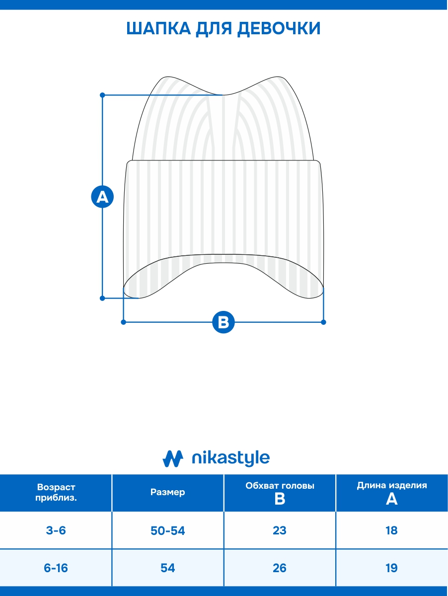 Комфортная температура эксплуатации от 0°С до -25°С. Шапка отлично сочетается со всей верхней одеждой и другими изделиями коллекции NIKASTYLE.