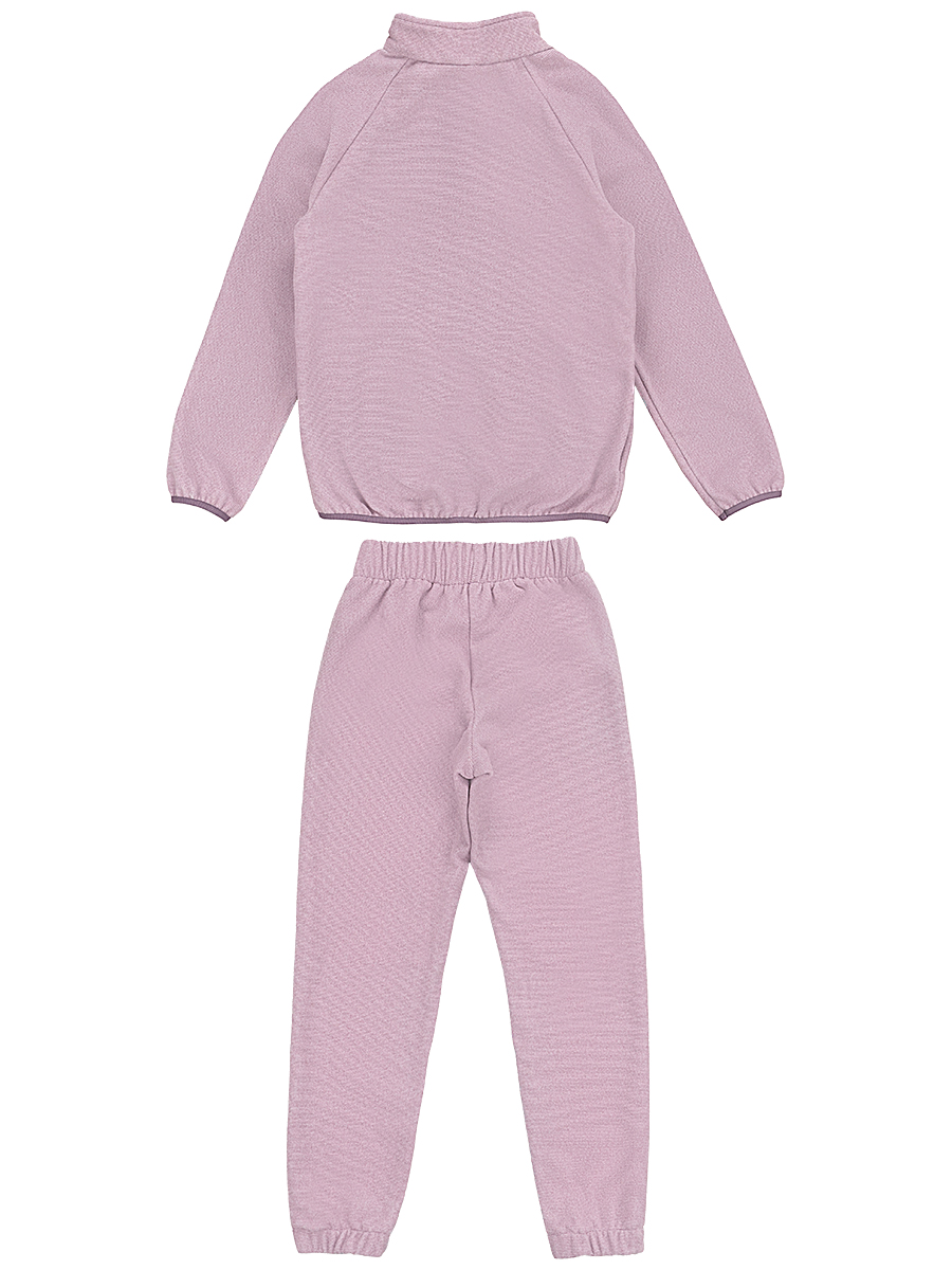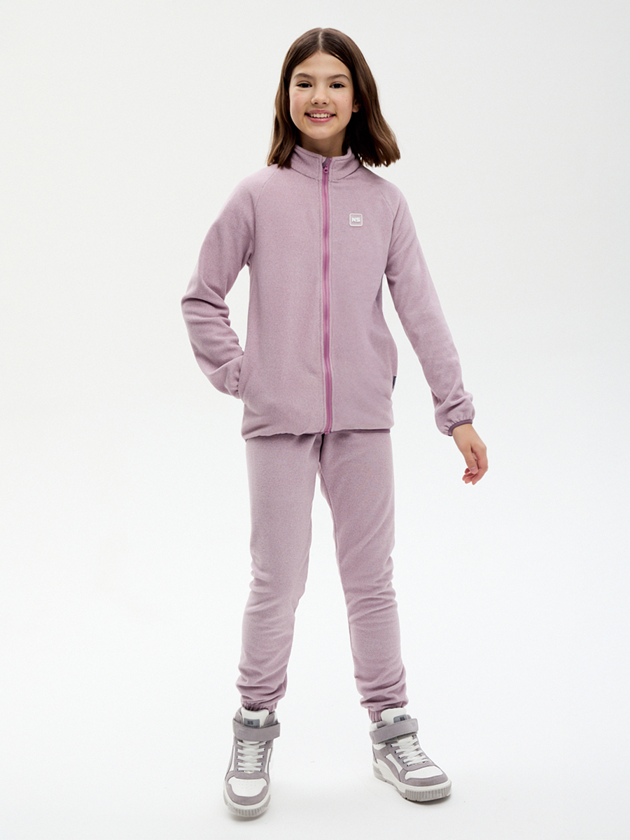 Костюм для девочки МЕЛАНЖ из мягкого меланжевого флиса. Теплый и приятный на ощупь флис быстро сохнет, выводя влагу в верхние слои одежды. Флис в зимней одежде обеспечивает изоляцию и удерживает тепло, что позволяет находиться на улице дольше. Модель прекрасно подойдет в качестве дополнительного слоя поддевы для прогулок, а также в виде домашней одежды.